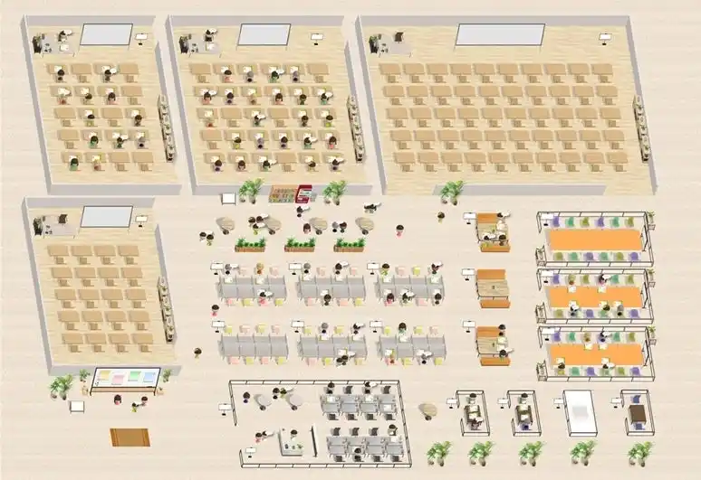 ・オンライン授業(教科型・テーマ探究型・サークル型) ・自習室(学習習慣の形成支援) ・進路相談・生活相談などのオンライン相談ブース ・学研ジュニアライブラリーによる電子書籍の活用 ・生徒主体の委員会活動・オンライン全体集会 ・進路・学習に関する情報発信 |
