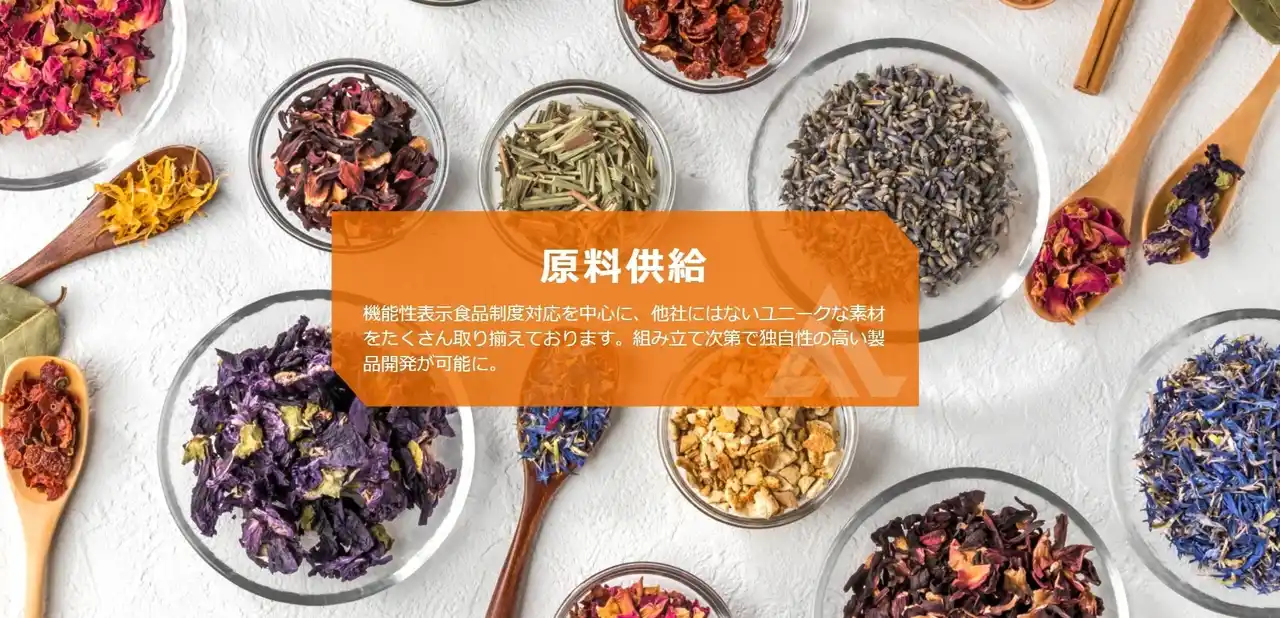 | AL-FOODSは、健康食品・食品原料の企画、開発および販売、機能性表示食品制度届出代行などを展開しています。加えて、独自素材・独自成分の展開実績を有しており、公開情報ではヤナギラン抽出物「ENOTphagy(R)︎」の原料ポジティブリスト登録や、独自の米国特許成分「ido-BR1」を含むキュウリ抽出物の国内本格販売開始などを発表しています。こうした知見をもとに、販売事業者の商品差別化につながる素材提案や商品設計を支援します。 | |||