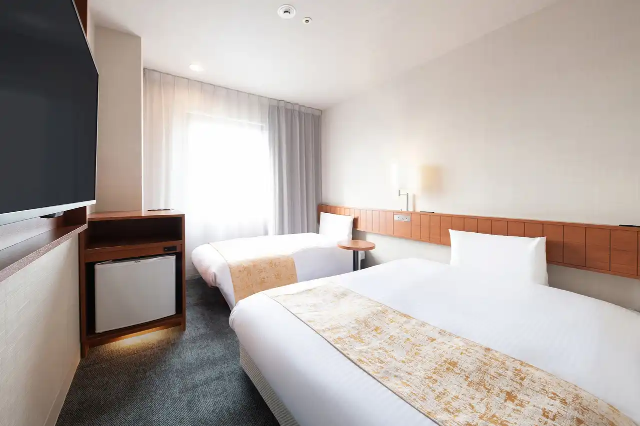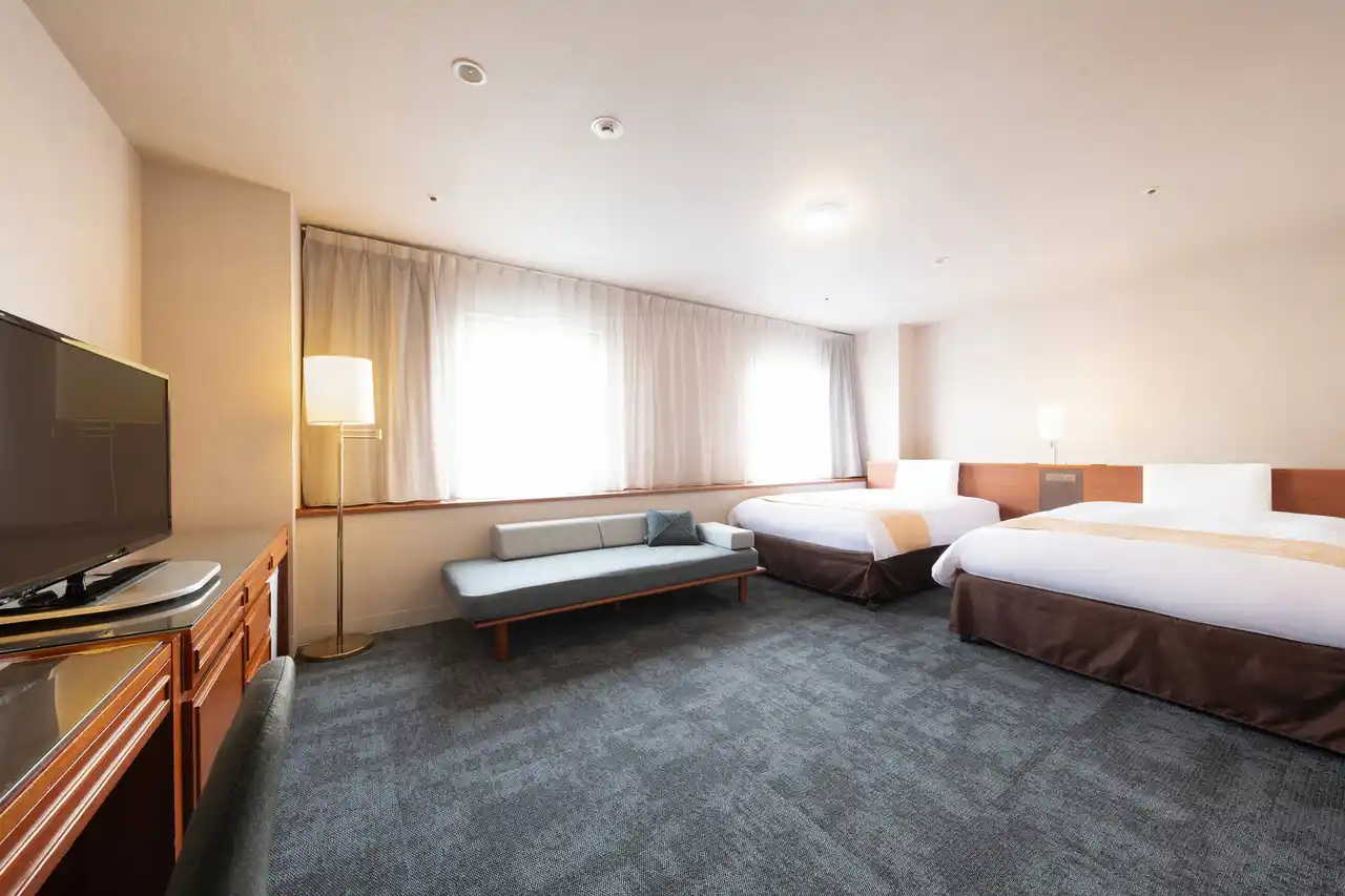 加えて、ご家族やグループでのご利用に対応するため、ソファベッド付きのツインルームを新たに5室設けました。あわせて客室の天井や壁面クロス、カーペットの張り替えに加え、テレビや照明も一新。より快適な空間へと生まれ変わっています。 |