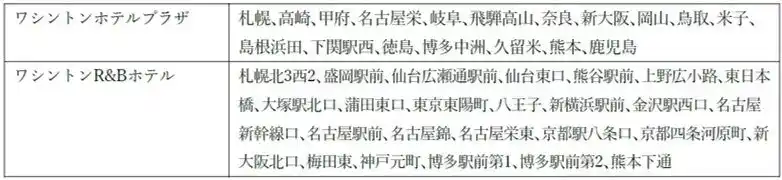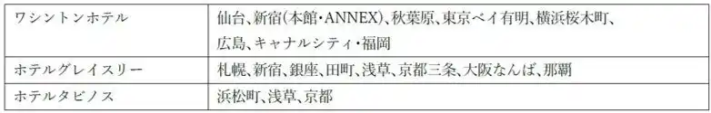 ▼「ワシントンネット」公式ホームページから予約可能になる当社対象施設(18施設)※ |