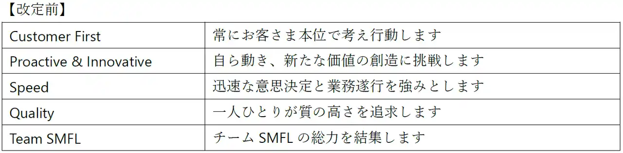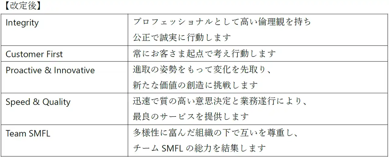【三井住友ファイナンス&リース株式会社】 経営理念・経営方針「SMFL Way」の改定について