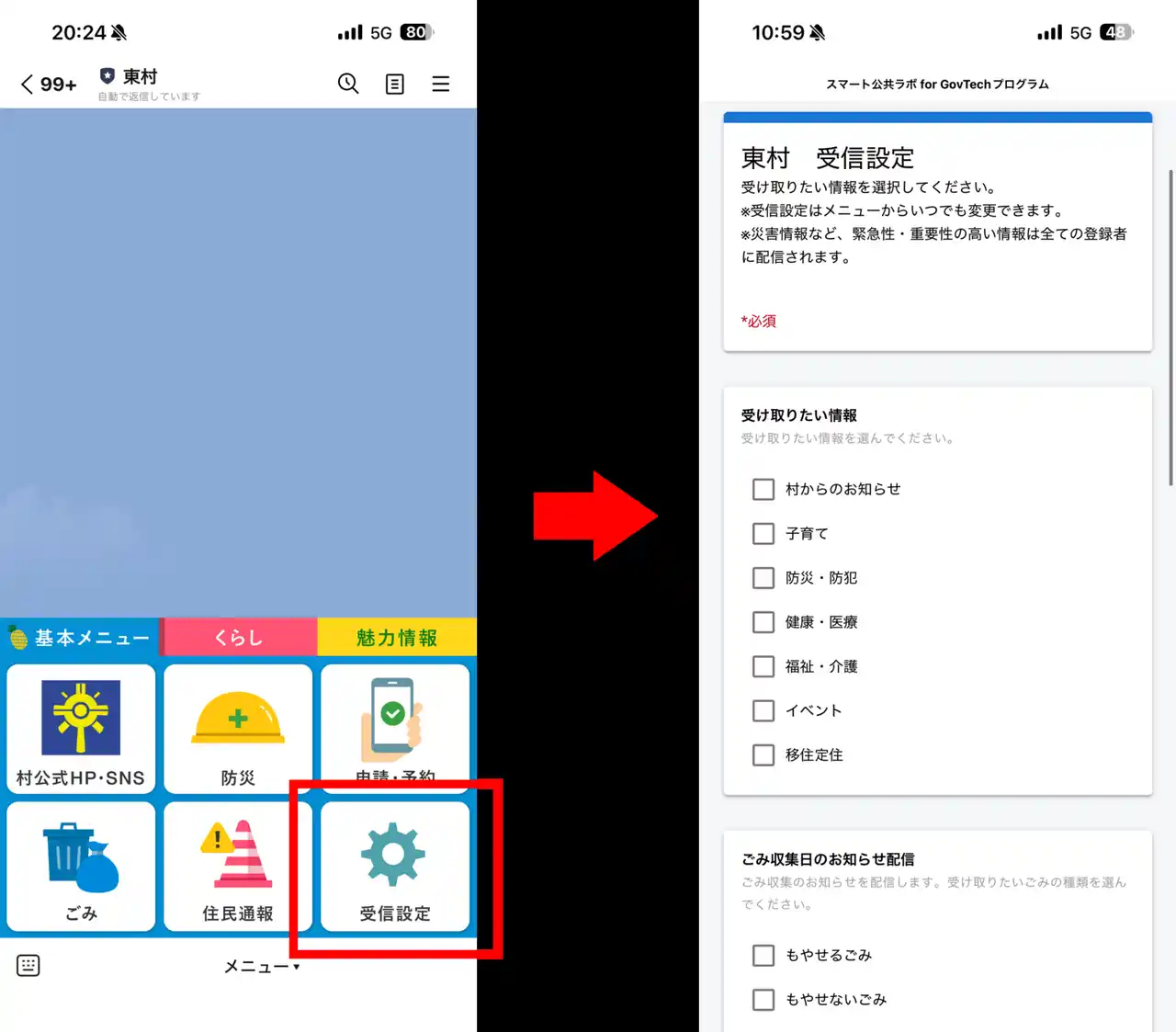 | 住民の希望に応じた配信だけを届ける「セグメント配信」機能を導入。欲しい配信カテゴリーを「受信設定」に回答することでカスタマイズすることができます。住民がほしい情報に絞って配信ができるため、情報発信がこれまで以上に効果的になることが期待されます。 | ||||||||||||||||||||||||