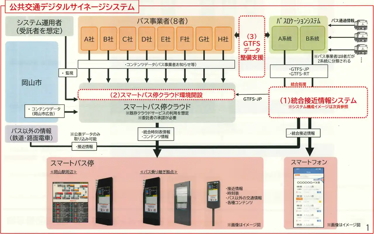 (出典:岡山市【仕様書(別紙)】公共交通デジタルサイネージ構築・運用保守業務委託) |