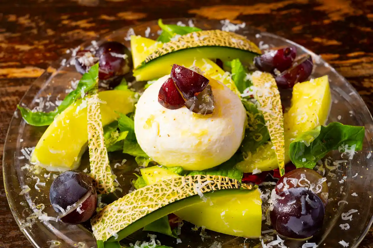 旬の果実とプラータチーズ |