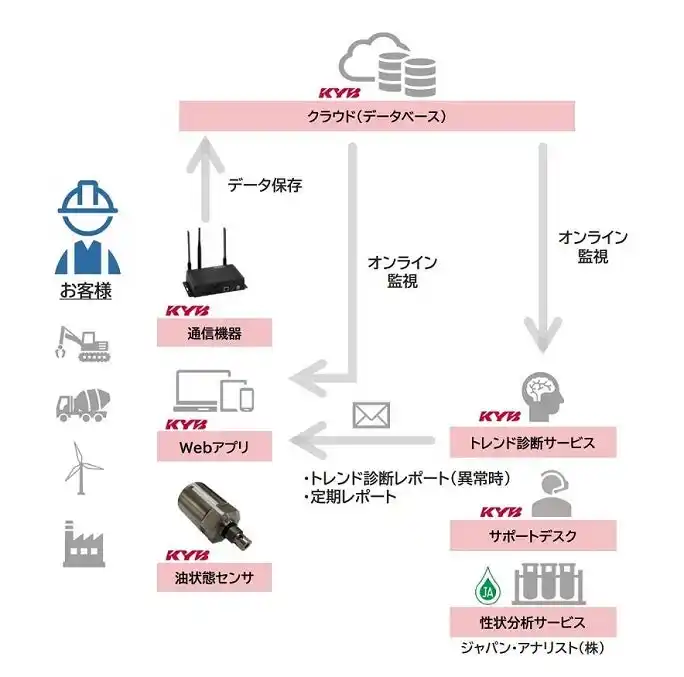 カヤバ株式会社(以下、カヤバ)は、油圧機器に使用される作動油の状態を常時監視し、設備の安定稼働と保全業務の効率化を支援する 「油状態診断システム」 のサービス提供を開始しました。 |