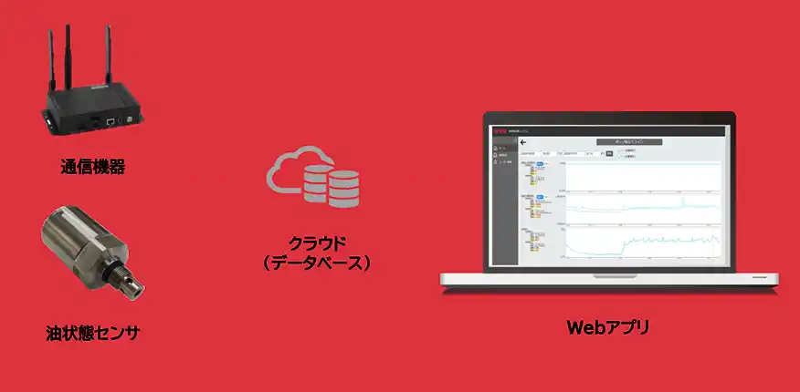 本システムは、油の比誘電率および導電率を高精度に計測する油状態センサと、IoTプラットフォーム、専用Webアプリケーションを組み合わせたサービスです。 |