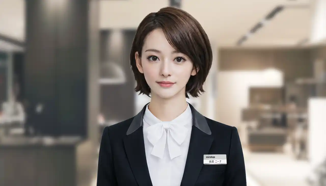 しかし、これらの取り組みは来場者の利便性を高める一方で、遠隔でスタッフが常時対応できる体制を維持する必要があり、人手不足の根本的な解決には至りませんでした。こうした背景を踏まえ、この度、当社初のAI社員「美楽 ニーナ(みら にーな)」の採用を決定いたしました。AI社員の導入により、常駐・遠隔スタッフを必要としない完全無人での運営を実現します。予約不要でいつでも接客対応が可能となり、接客待ちや混雑時の機会損失を防ぐとともに、快適な顧客体験の提供を目指します。美楽 ニーナは4月4日(土)に「ABCハウジング ウェルビーみのお」内の「ウェルビーみのお HDC BOX」展示スペースに配属され、来場者への接客業務を担います。 |
