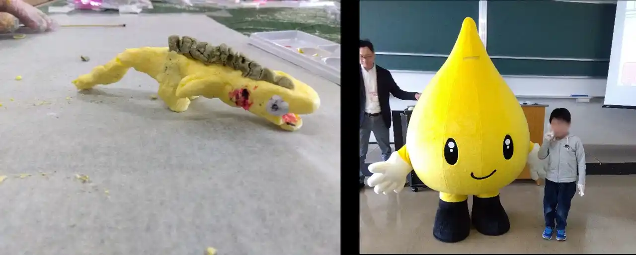 また、今回がイベントデビューとなったUCOのキャラクター「Yuちゃん」は、子どもたちに大人気。握手や記念撮影を楽しむ姿が多く見られたほか、エコ石けんづくりではYuちゃんをモチーフにした作品をつくる様子も見られ、会場は大いに賑わいました。 |