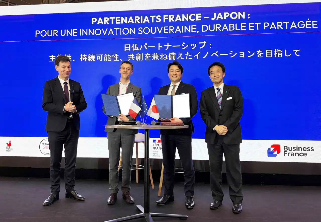 本署名式は、日仏両国の宇宙分野における連携強化を目的として執り行われ、フランスのフィリップ・バティスト 高等教育・研究・宇宙大臣、および風木 淳 内閣府宇宙開発戦略推進事務局長の臨席のもと、両社の合意が交わされました。 |