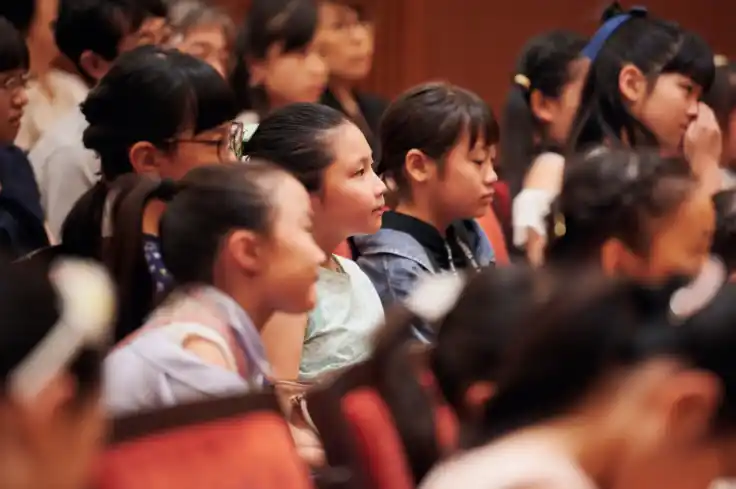 「特級グランド・コンチェルト」の客席には、多くの子どもたちを招待しています。 自分たちに近い世代のピアニストが、大オーケストラと堂々と渡り合う姿。その圧倒的な迫力と感動は、子どもたちの感性を揺さぶり、「自分もいつかあの舞台へ」という想いを育みます。 |