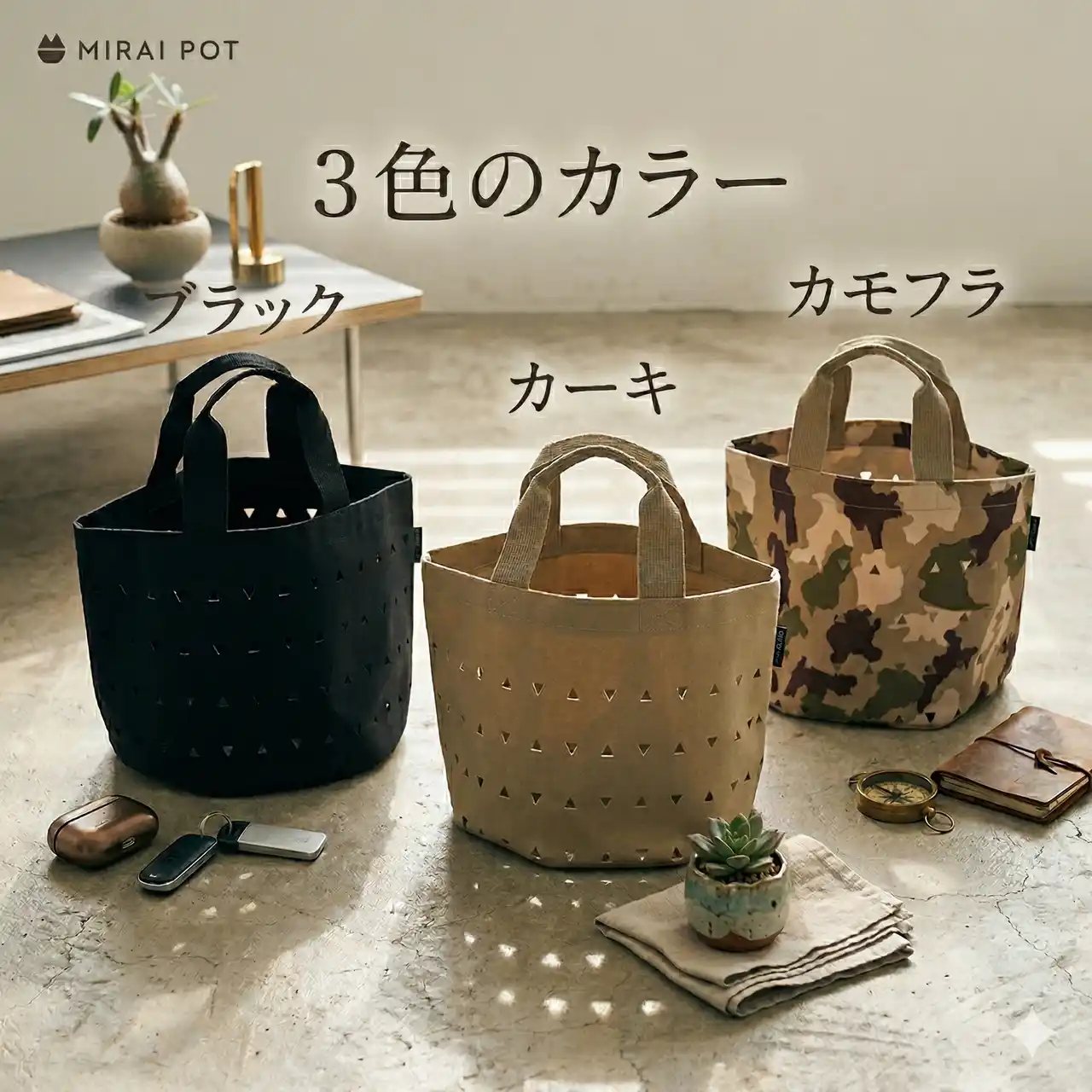 素材にはUV加工と撥水加工を施した特殊オックスフォード生地を使用。屋外の過酷な環境下でも劣化しにくく、数年単位での長期使用が可能です。プラスチック鉢に代わるサステナブルな選択肢として、環境意識の高いユーザーからも支持されています。 |