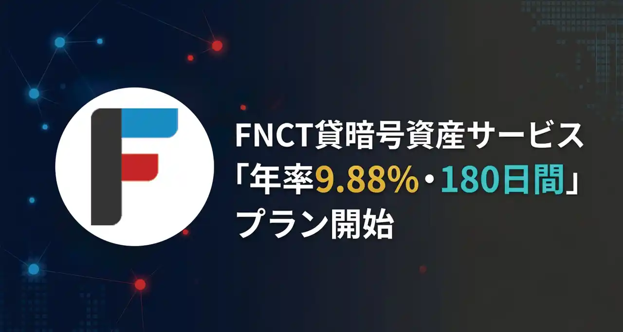 当社は、FNCT貸暗号資産サービスの「年率9.88%・180日間」プランを、2026年4月1日(水)より開始することをお知らせいたします。 |