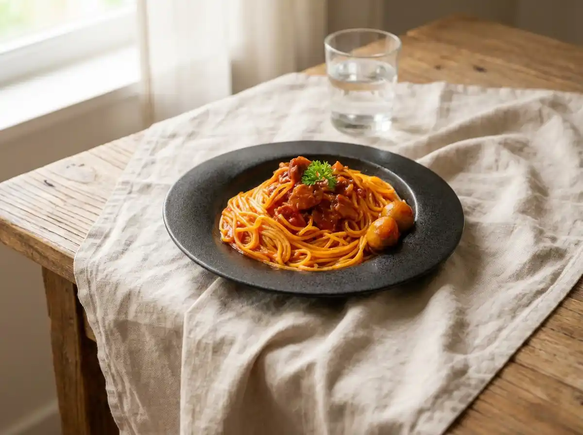 トマトの爽やかな酸味とたまねぎの甘み、ベーコンのコクが調和した、香ばしく濃厚な味わいが特長です。麺に絡めるだけでなく、オムライスやグラタン、ドリアなど、幅広いアレンジメニューにもお使いいただけます。 |