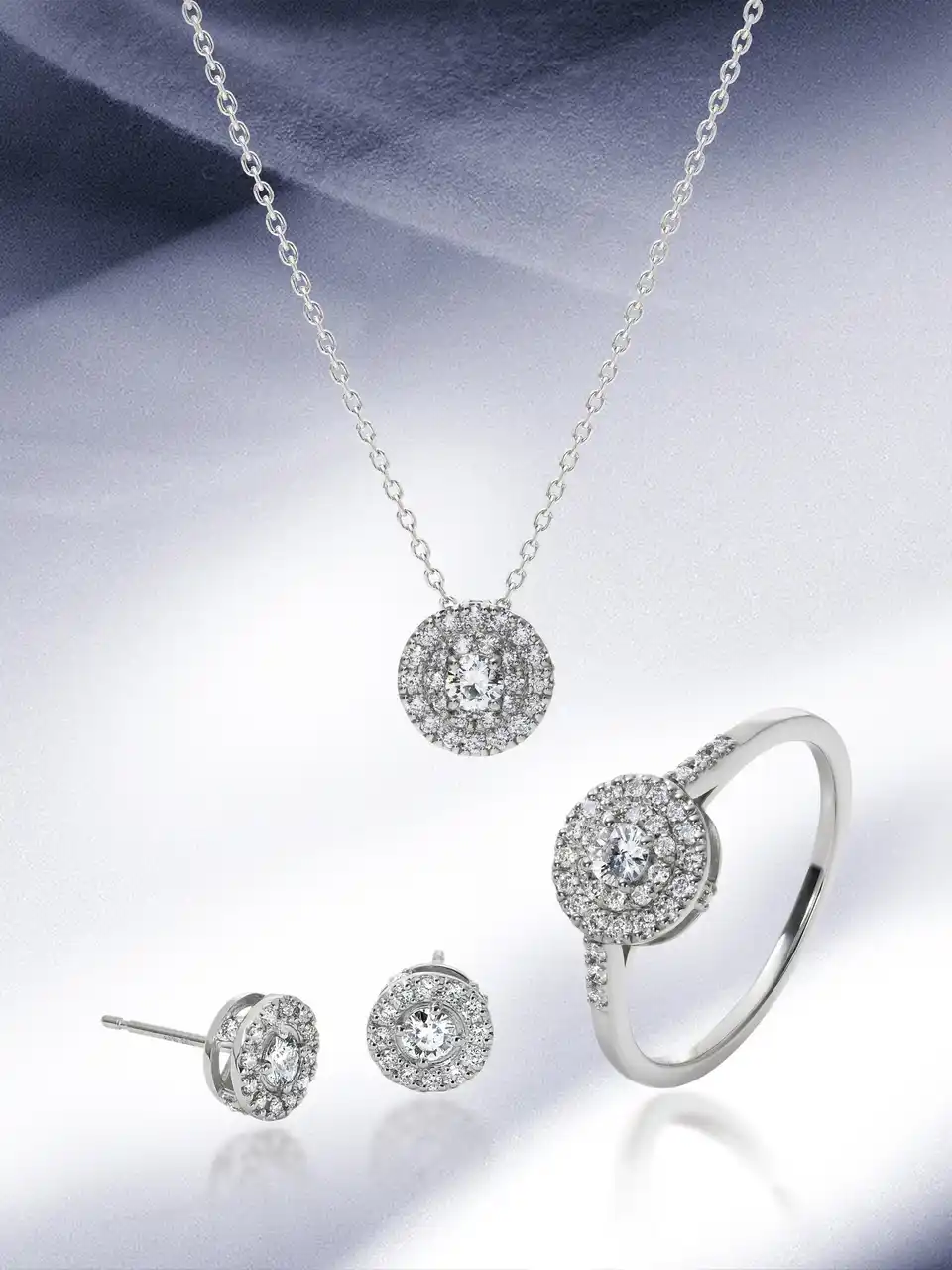 | 花びらのようにやさしく包み込む二重のメレダイヤモンド。 | |||||||||||