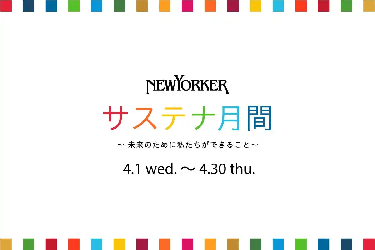 | そこで、ニューヨーカーショップでは春物への衣替えの時期にあたる4月に「 ニューヨーカーサステナ月間 ~未来のために私たちができること~」と題して、3つの”つながる”イベントを開催いたします。 | ||||||||||
