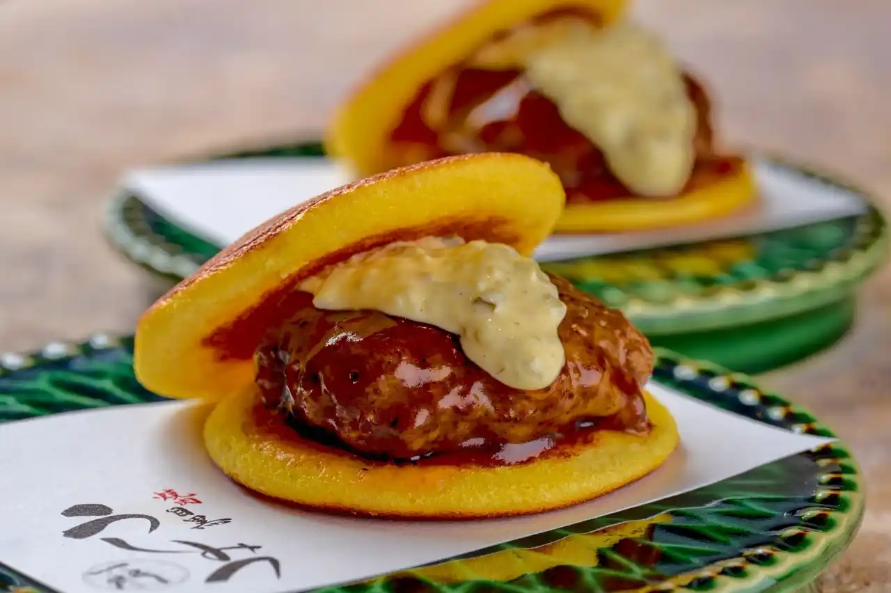 | 「どらバーグ」:どら焼きの皮でハンバーグを挟む、遊び心に満ちた唯一無二のサンドメニューです 。 | |||