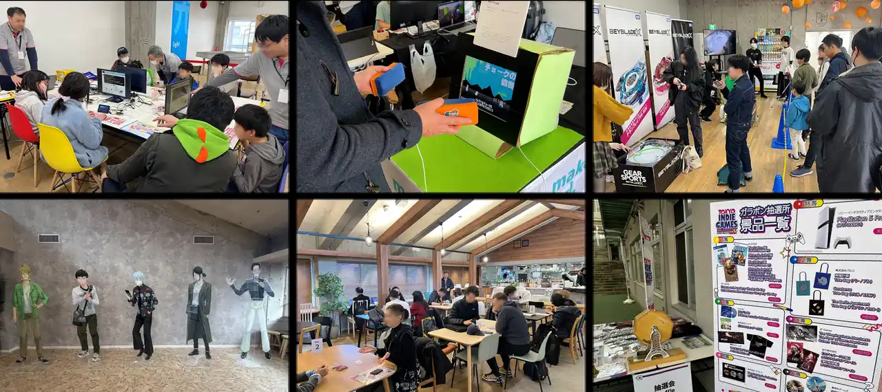 | 会場内では、クリエイター出展によるゲーム試遊ブースのほか、家族連れから業界関係者まで幅広い層を対象にした多彩な企画やコーナーが展開されました。 | ||||||||||||||