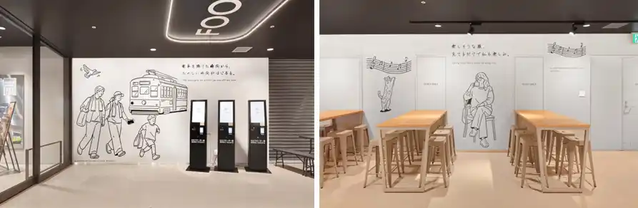 長崎スタジアムシティで過ごす皆様が決済にストレスを感じる事がなく、観戦体験を楽しむ様子を「Seamless days」というテーマの下でデザインし、壁面に複数のデザイン画を掲出いたします。壁面デザインは、イラストレーターのYunosukeさんによる描き下ろしとなっております。 |
