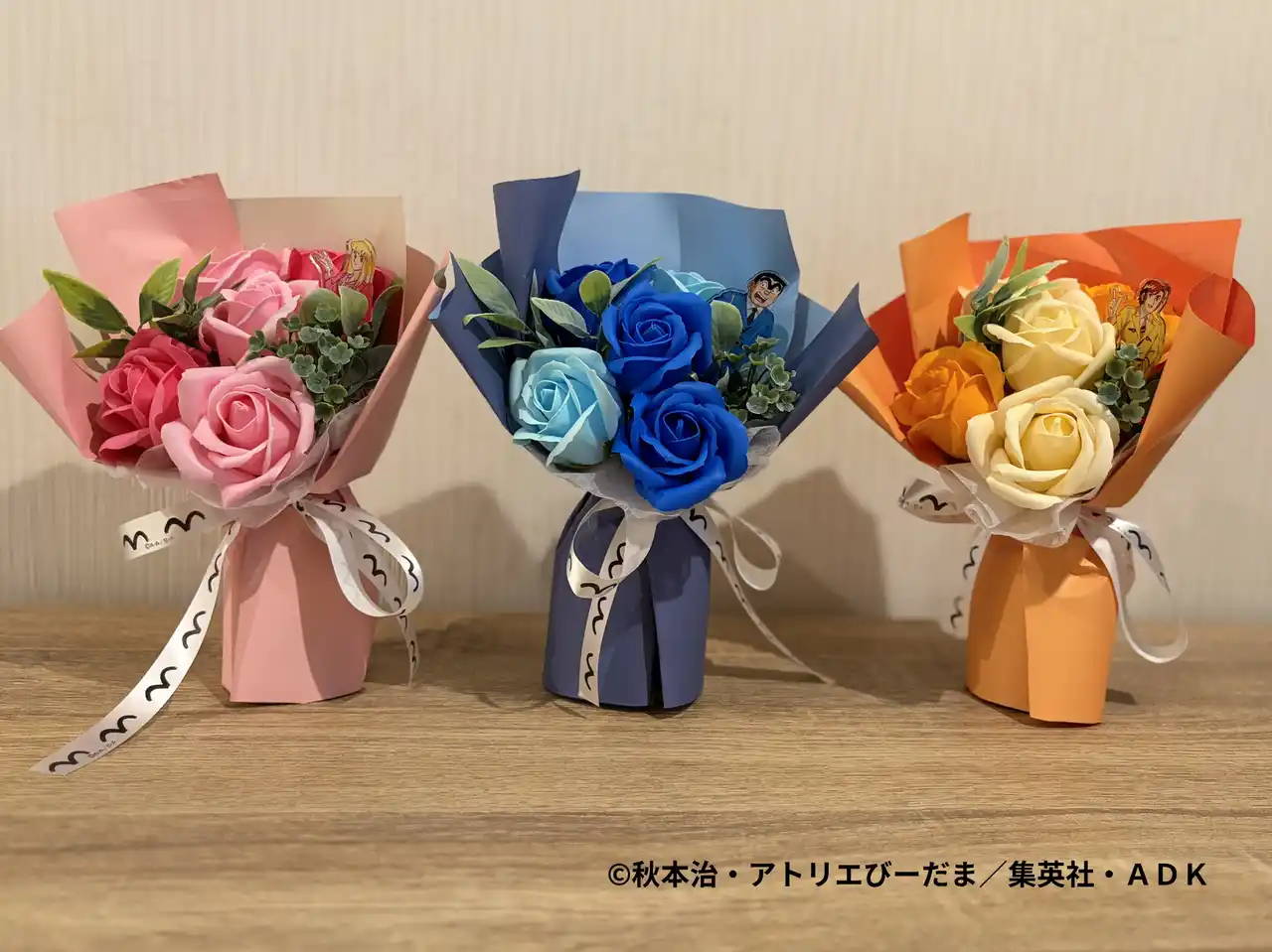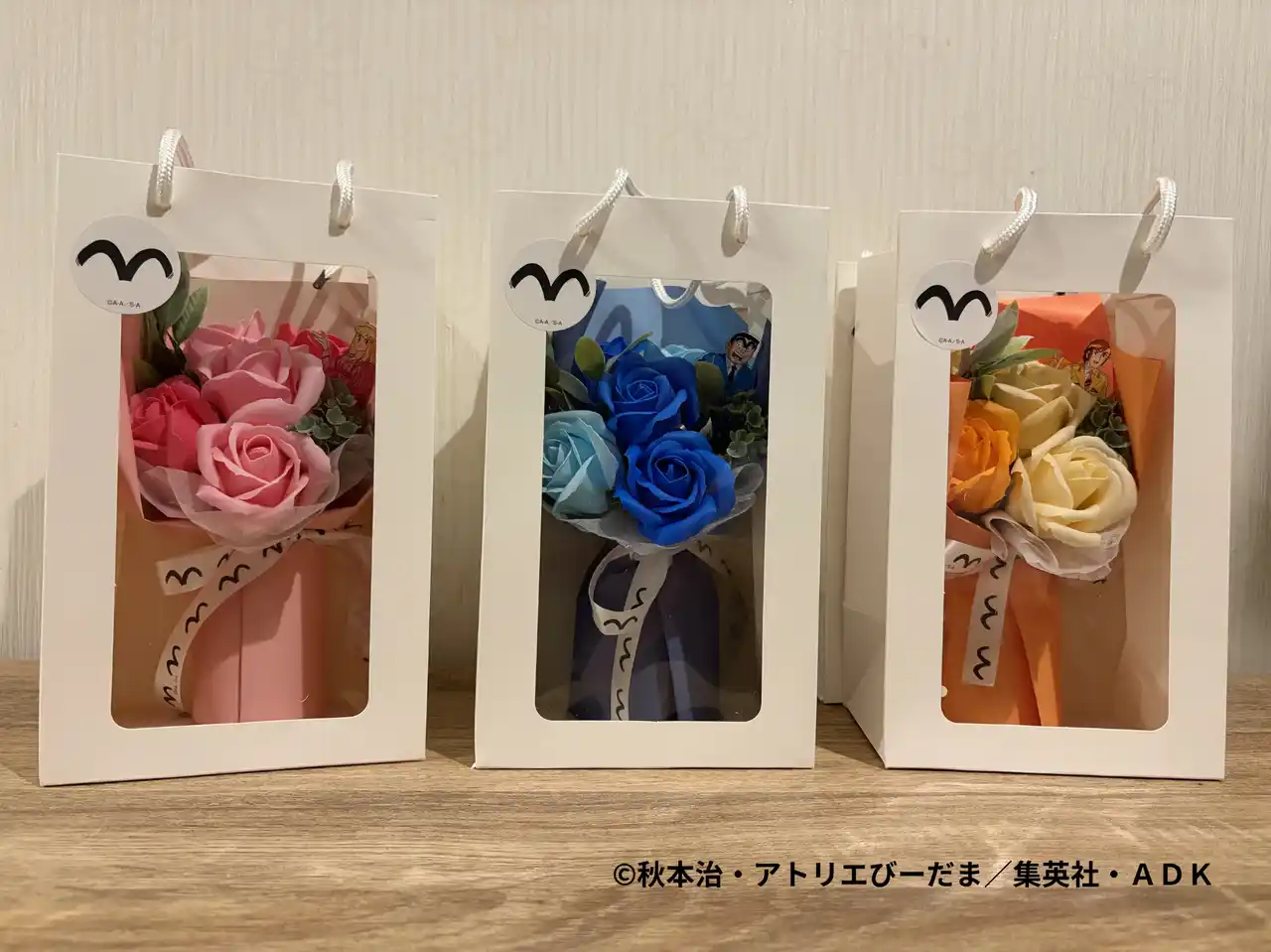 | 株式会社まこと屋(所在地:東京都葛飾区)は、葛飾区亀有の花店による地域発の取り組みとして、『こちら葛飾区亀有公園前派出所』の公式ライセンスのもとキャラクターをイメージしたカラーのコラボソープフラワーを2026年3月31日より好評発売中! | ||||||||||||||||