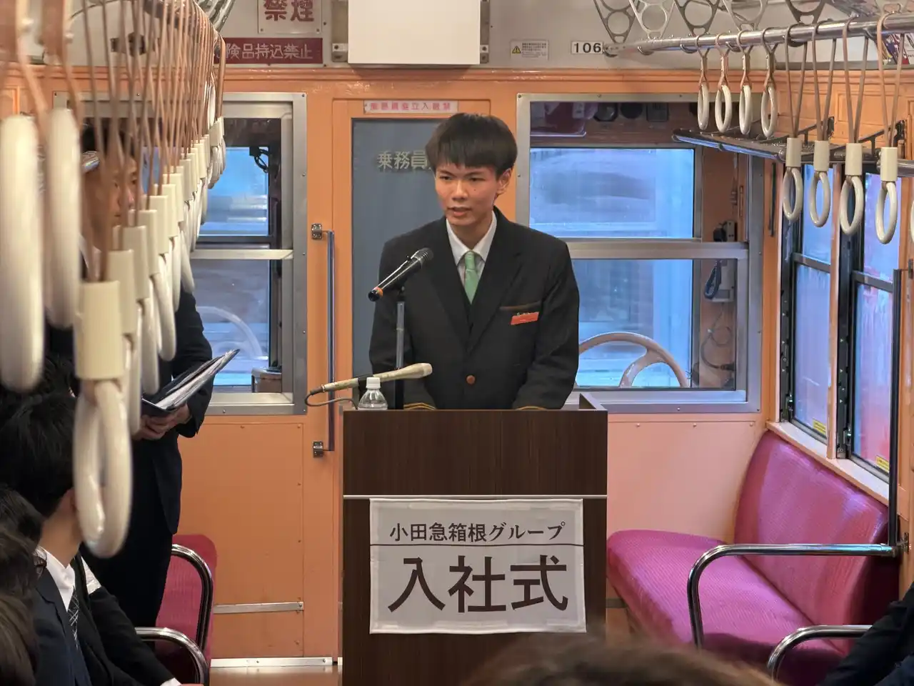 小田急箱根グループの株式会社小田急箱根(本社:神奈川県小田原市 社長:水上 秀博)、箱根登山バス株式会社(本社:神奈川県小田原市 社長:野村 尚廣)は、2026年4月1日(水)、箱根登山電車100形車両(モハ1形・モハ2形)での入社式を初開催し、7名の新入社員を迎えました。 |
