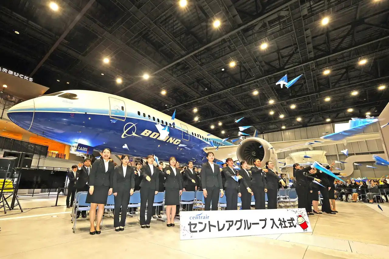 | 2026年度のセントレアグループの新入社員は70名。中部国際空港セントレアを象徴するボーイング787初号機の展示施設「フライト・オブ・ドリームズ」で社会人の一歩を踏み出しました。 |
