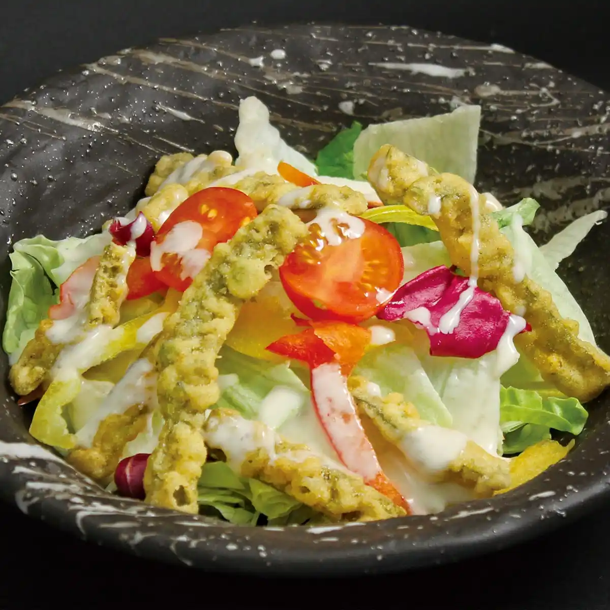 瀬戸内海で育てられた海苔を贅沢に使い、トリュフ風味の海苔天に仕上げました。口に入れた瞬間から感じるトリュフの風味と、噛むほどに広がる海苔の旨味は、他では楽しめないオリジナルの味です。スピードメニューとしてだけでなく、おにぎりの具材やサラダのトッピングなど、様々なシーンでご使用いただけます。 |
