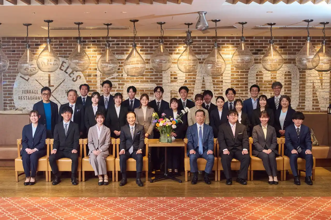 出席者:株式会社ファイントゥデイおよび株式会社ファイントゥデイインダストリーズの新入社員20名(ファイントゥデイ9名、ファイントゥデイインダストリーズ11名)と、代表取締役CEO 小森哲郎をはじめとした経営陣8名 |