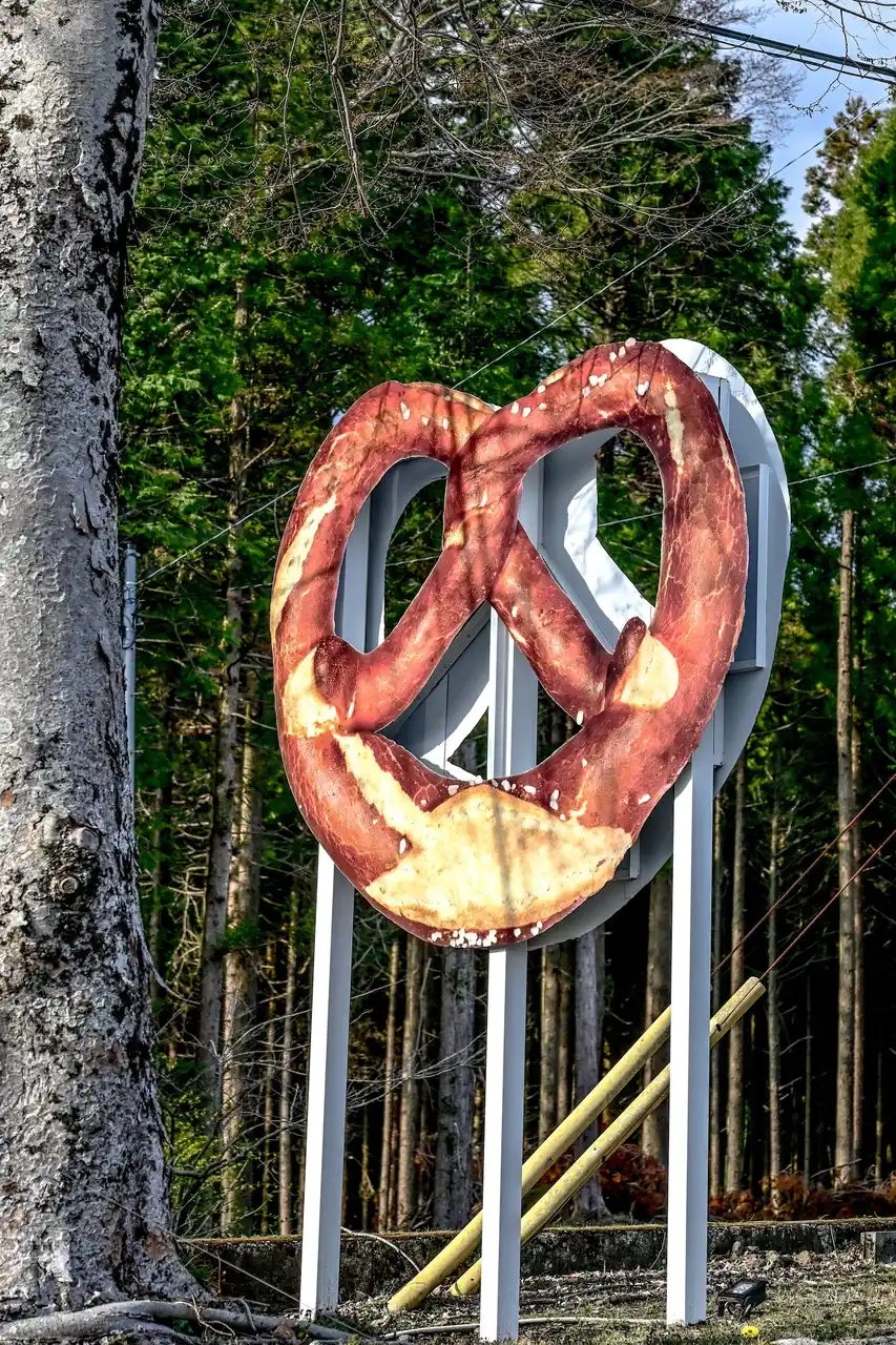 国道57号線沿いのおっきなプレッツェル看板が目印! |