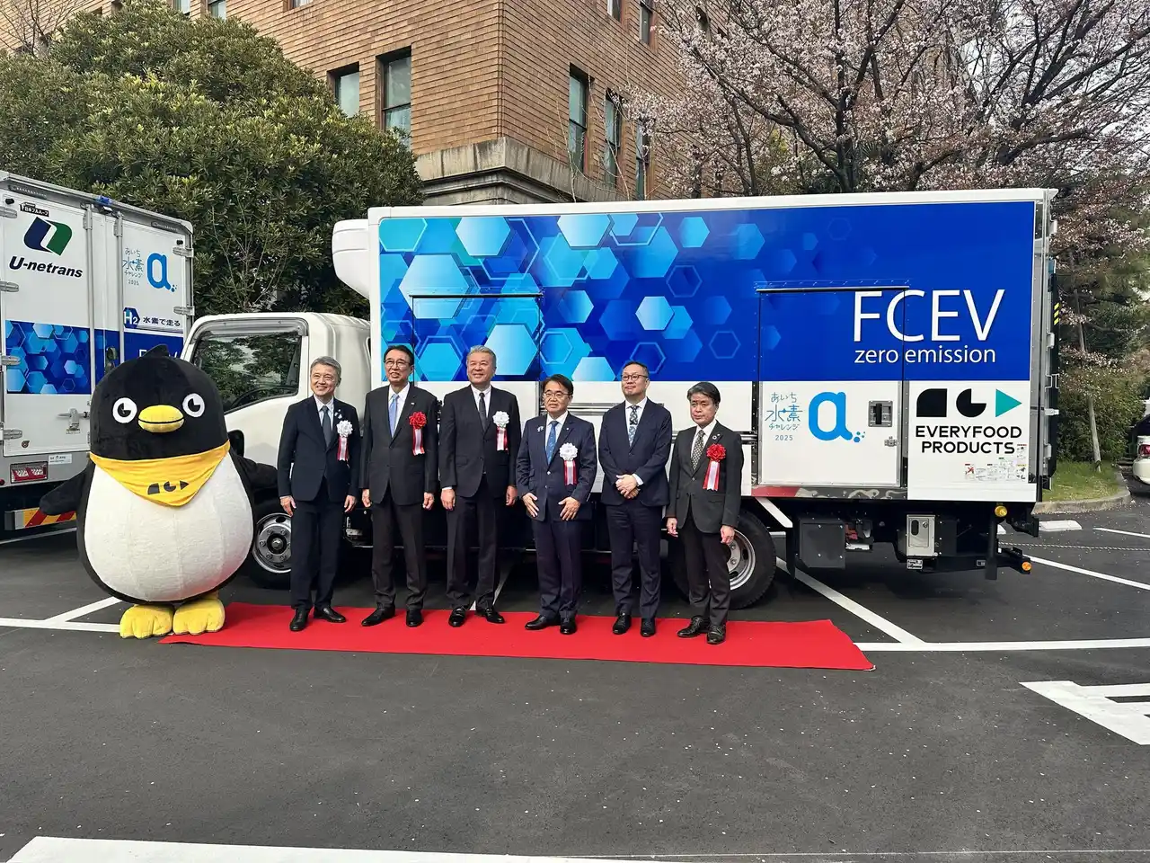株式会社EVERY HOLDINGS(以下当社)傘下の食材調達・食品製造・食品物流事業を担う株式会社EVERYFOOD PRODUCTSは、愛知県が推進する水素社会実現に向けた取り組みの一環として、燃料電池(FC)小型トラックを導入した先発企業として選定され、2026年3月30日に開催された「FC小型トラックファーストムーバーお披露目式」に参加しました。 |