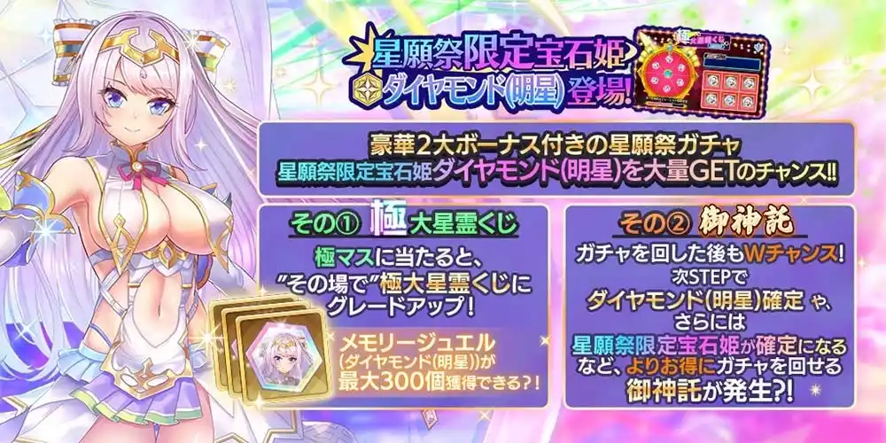 | 星願祭限定宝石姫のダイヤモンド(明星)をGET&ランクアップの大チャンスです! | |||