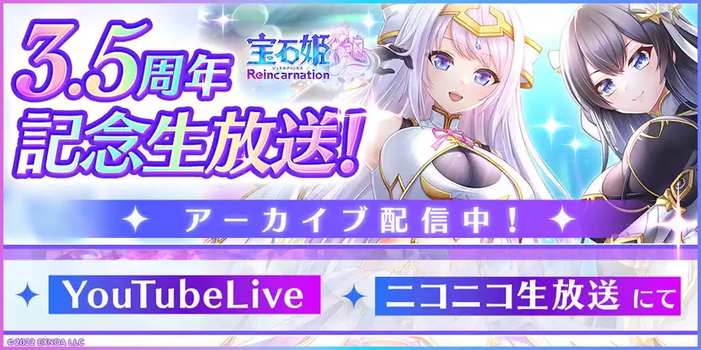 | 『宝石姫 Reincarnation』の3.5周年を記念した生放送が3月29日(日)に放送されました! | |||