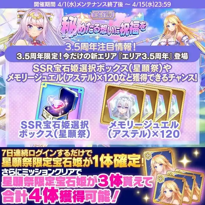 | 星願祭限定宝石姫やフェス限定宝石姫、その他豪華報酬などがGETできるため | |||