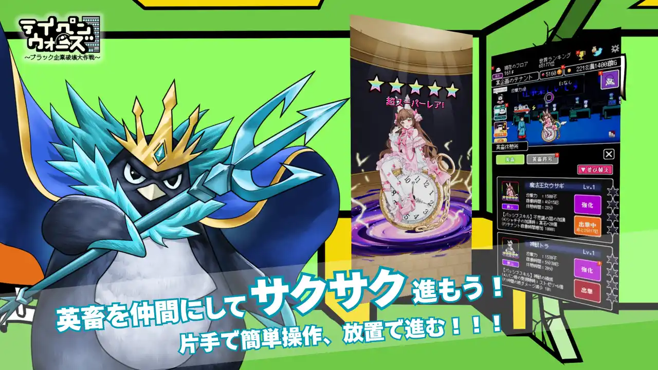 IPコンテンツの企画・制作・ビジネス展開を行う株式会社Plott(本社:東京都千代田区、代表取締役:奥野翔太、以下「Plott」)は、Plott Gamesが運営する「テイペンウォーズ~ブラック企業破壊大作戦~」(以下「テイペンウォーズ」)において、新「英畜」キャラクター「機械戦士ゾウ」および「冥王ペンギン」を追加実装したことをお知らせいたします。 |