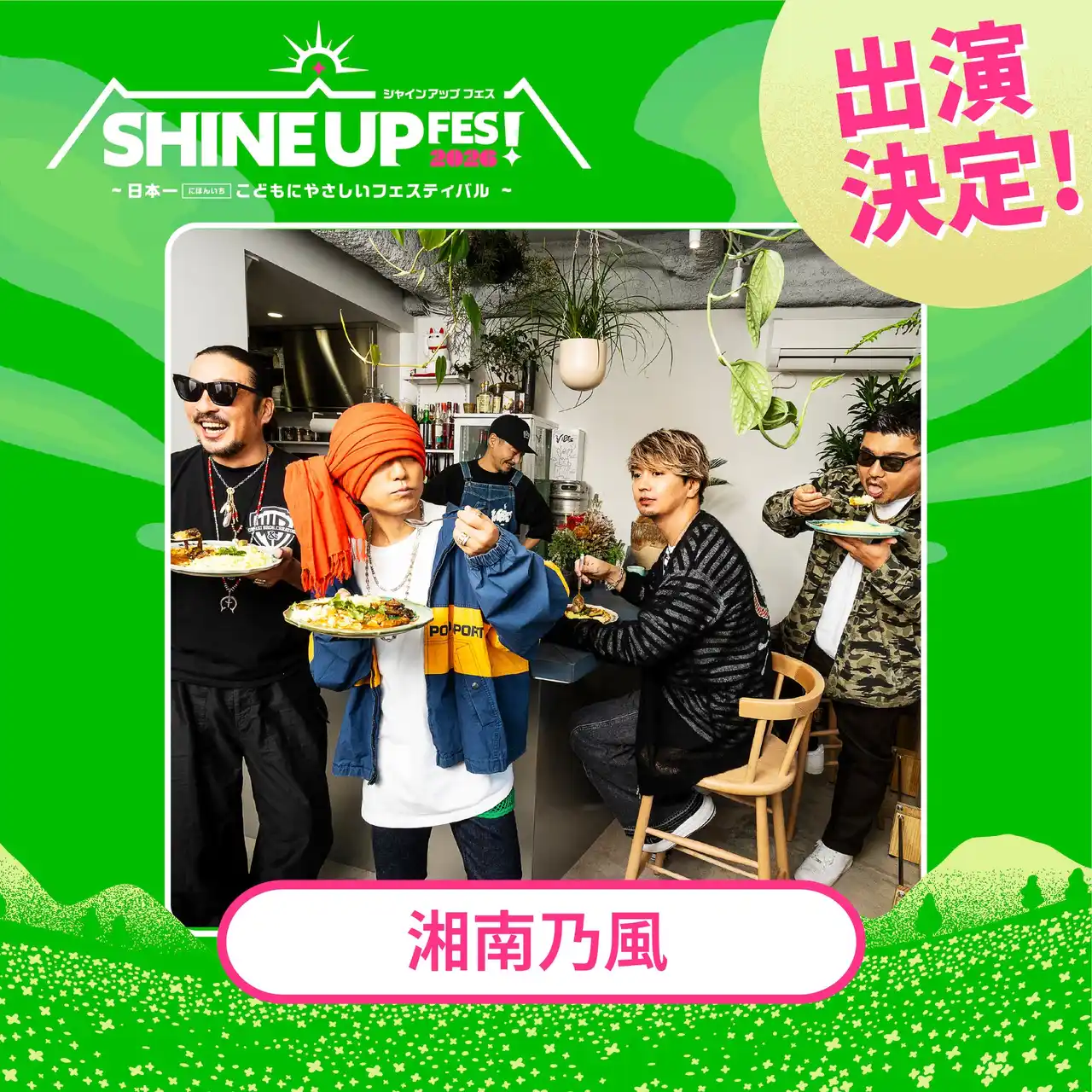 SHINE UP FES 実行委員会は、2026年9月5日∼9月6日に開催する音楽フェス「SHINE UP FES! 2026」の第1弾出演アーティストとして、湘南乃風、ハジ→、TEE、YAMATYの計4組の出演が決定したことをお知らせいたします。 |