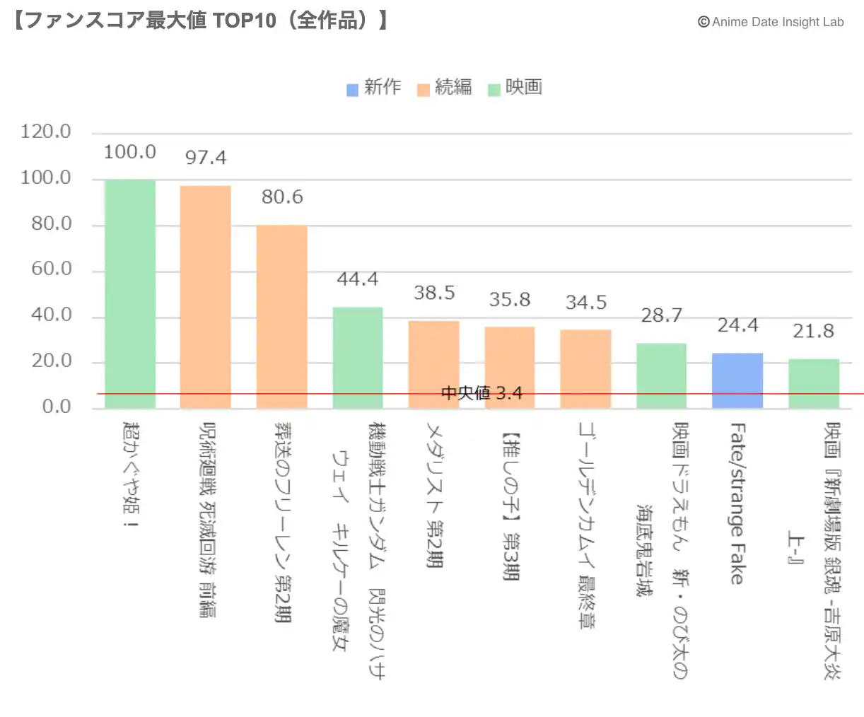 | テレビアニメは毎週の放送が「語るきっかけ」を定期的に供給できる。映画は公開という一回のイベントに集約される。その構造的なハンデを超えてファンスコア1位を取った事実は、それだけでも注目に値する。詳しくは後のセクションで分析する。 | |||