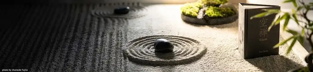 レーキ(熊手)を手に取り、一筋の砂紋を引く。その瞬間、周囲の雑音は消え、意識は指先の感覚と 石の質感に集中していきます。この「砂紋を整える」という所作そのものがマインドフルネスの役割を果たし、日常のノイズを削ぎ落とす贅沢なひと時を提供します。 |