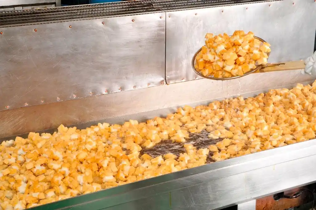 熟練の職人が美味しく出来上がるタイミングで丁寧に手揚げをする様子 |