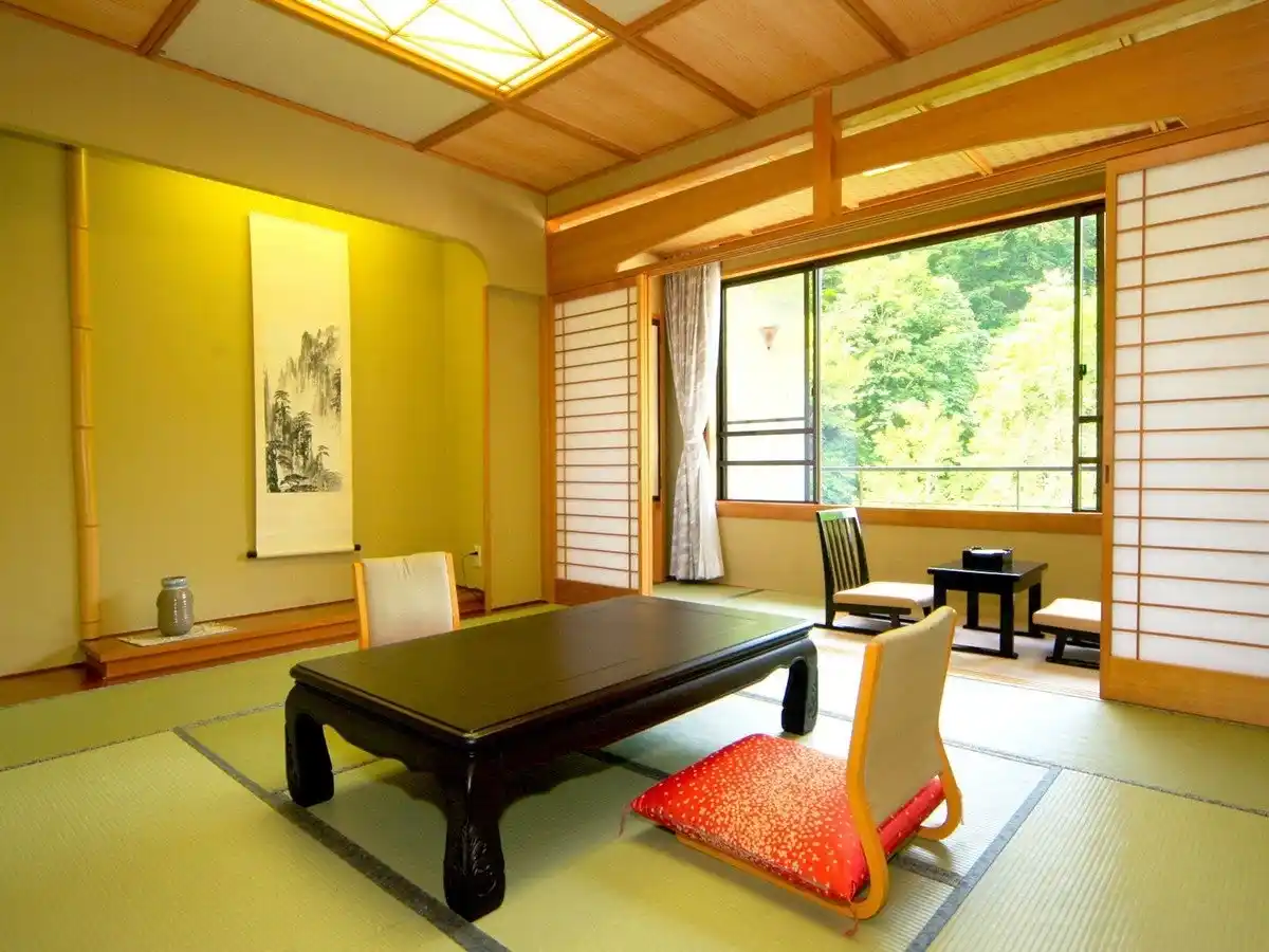 客室は、「和美麗15畳」と「和美麗10畳+広縁」をご用意しております。全てのお部屋が川沿いに面し、窓からは鬼怒川の絶景が広がり、川の音や四季の渓谷美をお楽しみいただけます。 |
