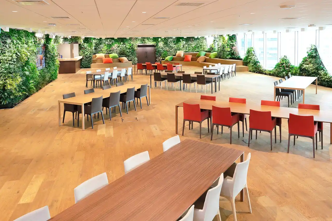 | DMM社内の開放的な空間で、迫力ある試合観戦をお楽しみいただけます | |||