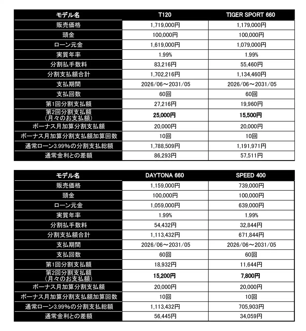 ロードスターシリーズは、俊敏さで人気のTrident 660、スポーティなDaytona 660をはじめ、Street Triple 765、そしてSpeed Triple 1200 RSとラインナップしています。また、アドベンチャーライダーのために、トライアンフはTiger Sport 660、Tiger Sport 800からTiger 900シリーズ、そしてTiger 1200シリーズまで、壮大なラインナップを取り揃えています。 |