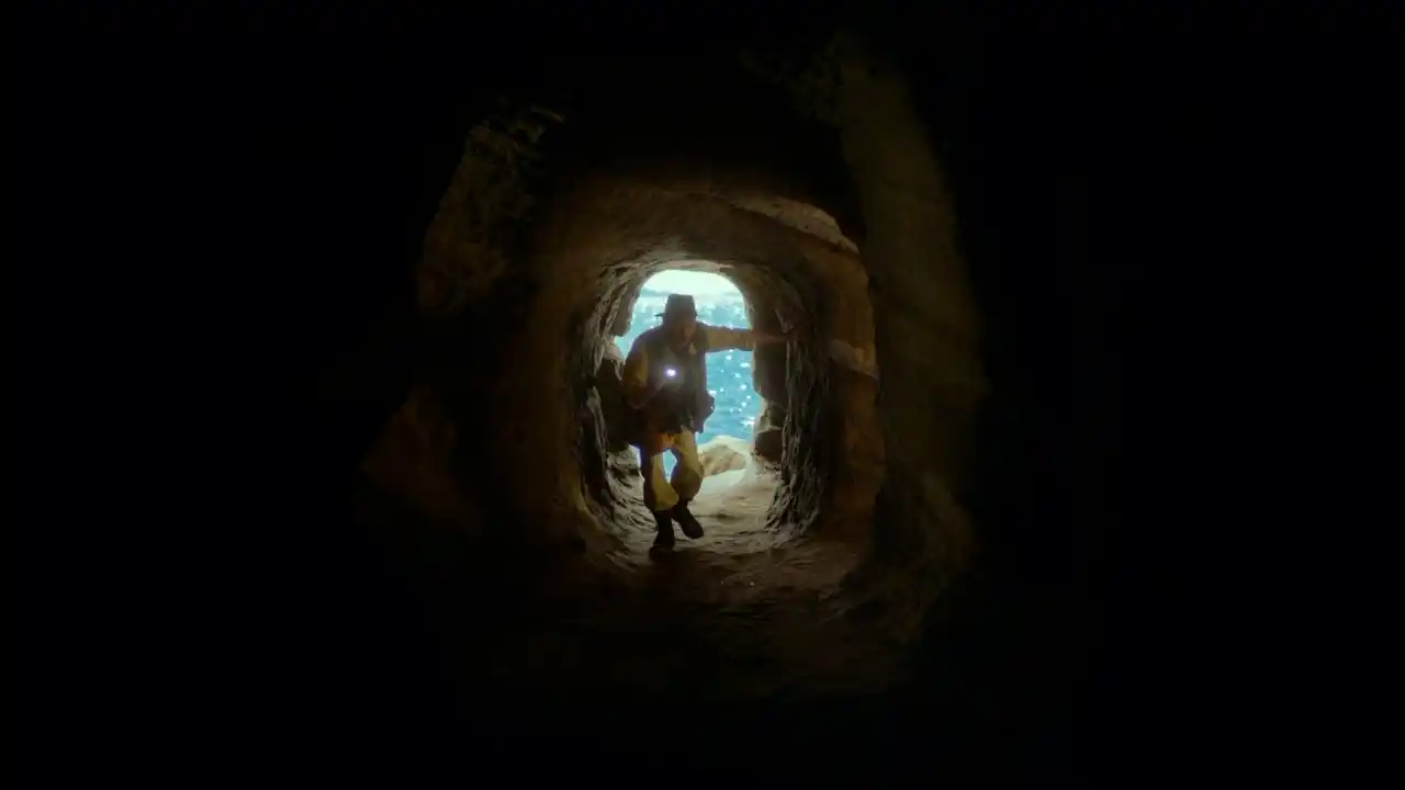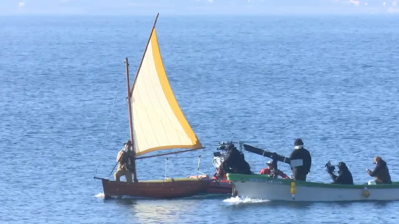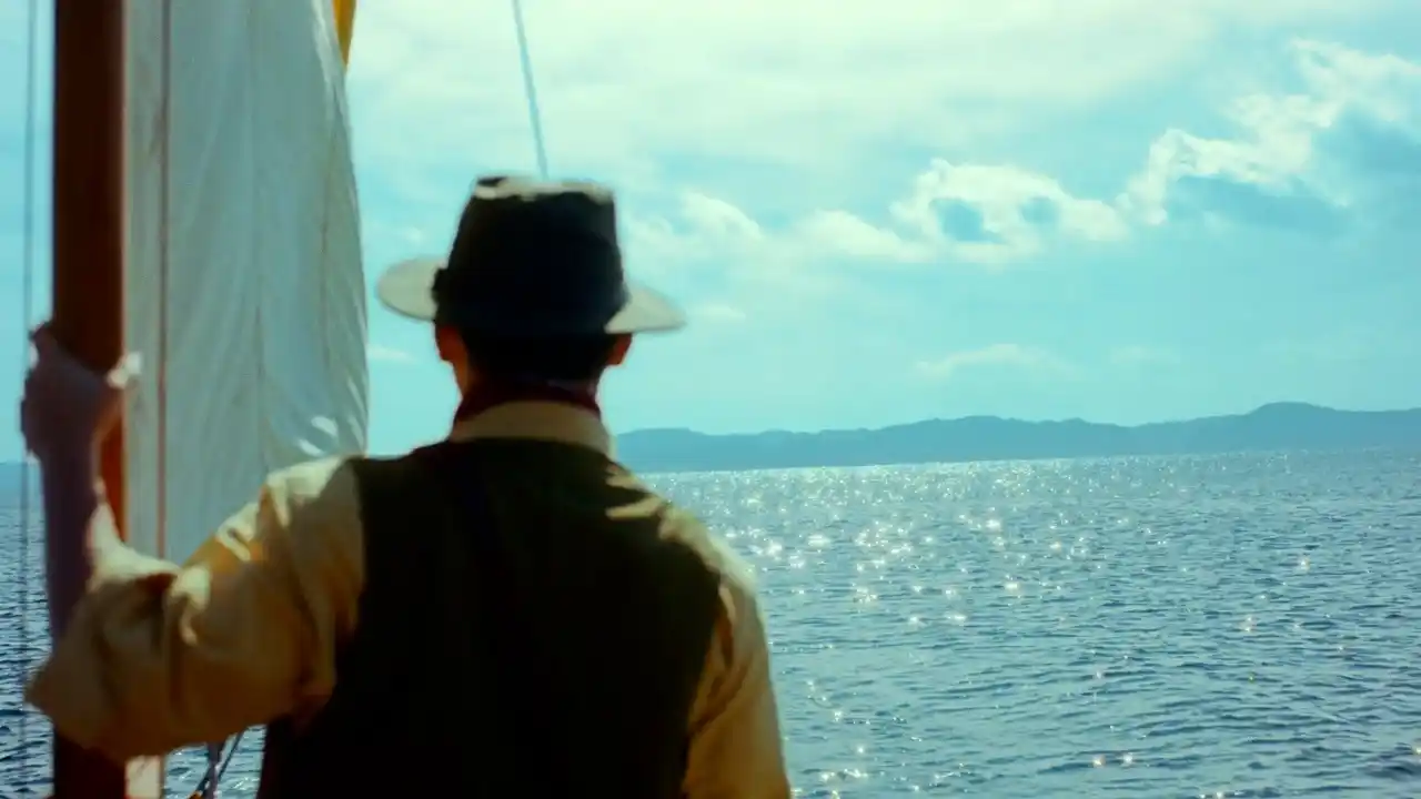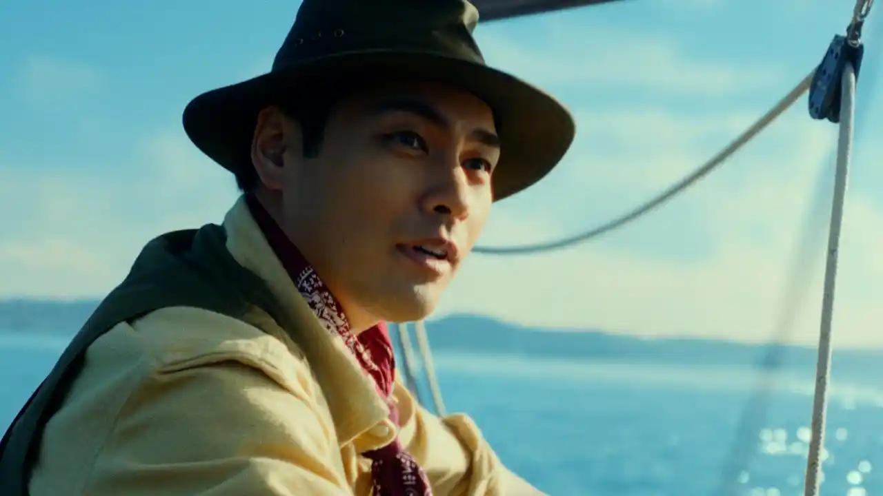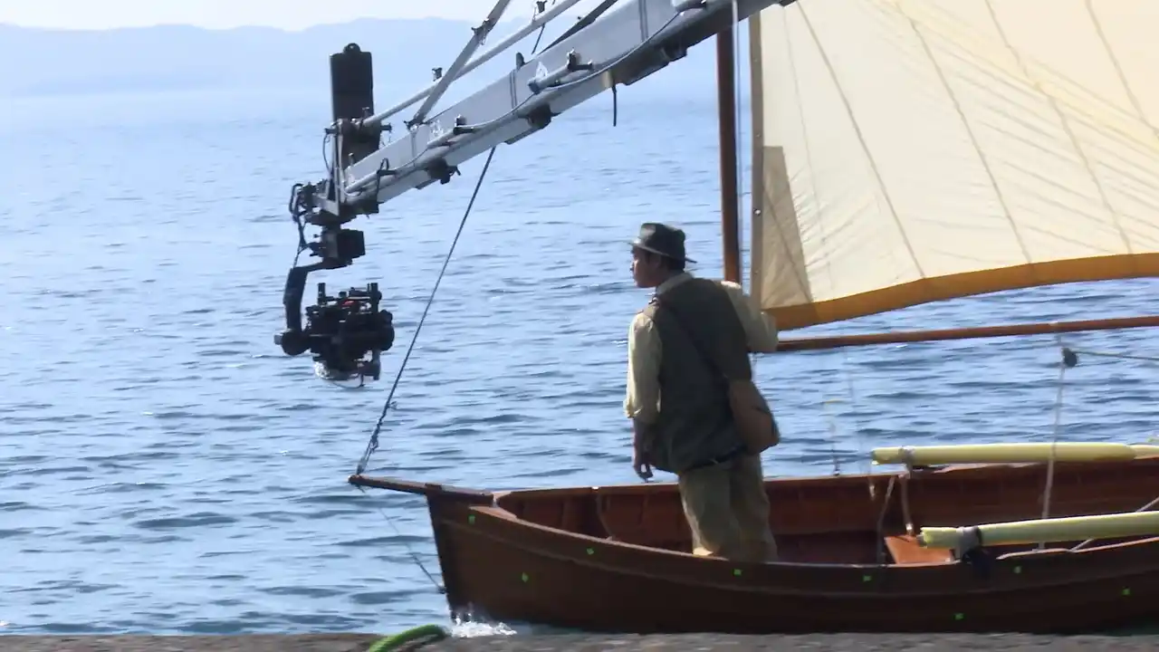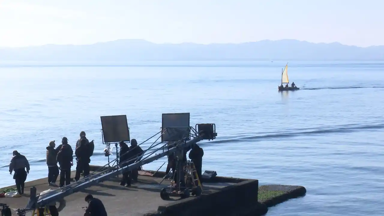 新たなシリーズ第1話「船出篇」の舞台は、柳楽さんが一人の探検家として航海に出る大海原です。撮影当日は天候にも恵まれ、冬の穏やかな海の上での撮影となりました。撮影は実際の船の上で行われ、波や風の影響で刻々と状況が変わるなかでも、柳楽さんはその環境を楽しむように演じ、まるで本物の探検家のような存在感を見せていました。海上でも堂々とした佇まいと豊かな表情で、未知の世界へ旅立つ探検家の心情の変化を見事に表現しています。たどり着いた島の森や洞窟を真剣な眼差しで突き進むシーンにもぜひご注目ください。 |