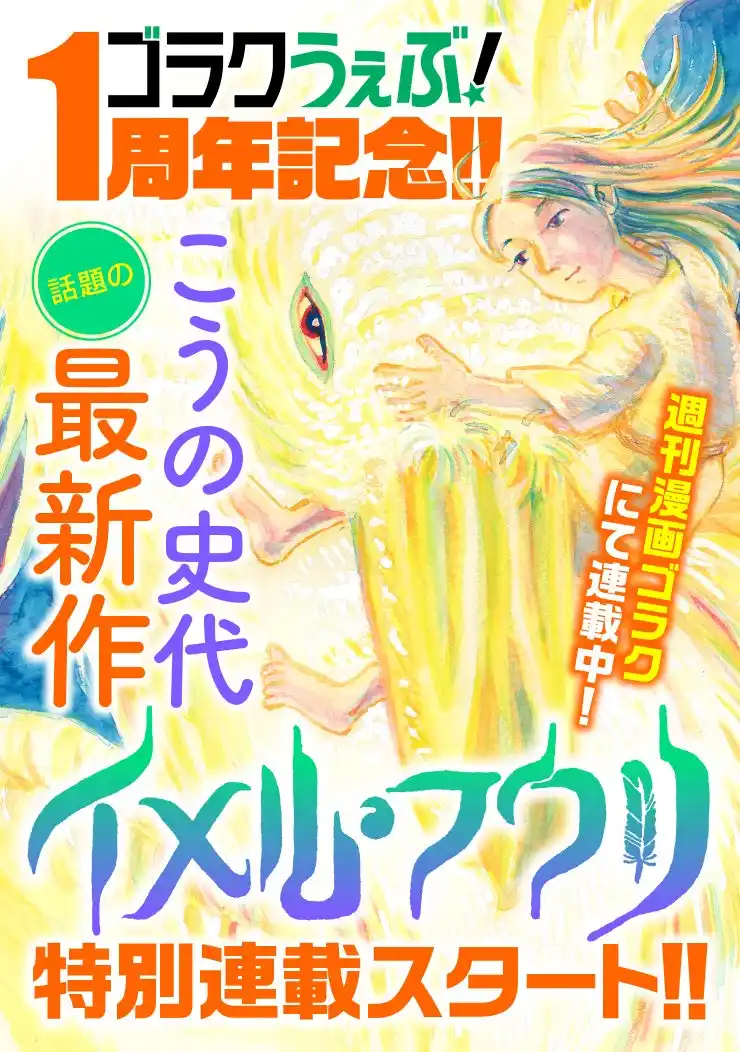 『この世界の片隅に』で知られる、こうの史代氏の最新作『イメル・フウリ』の連載が始まります。週刊漫画ゴラク(本誌)で話題の本作が「ゴラクうぇぶ!」でもお楽しみいただけます。 |