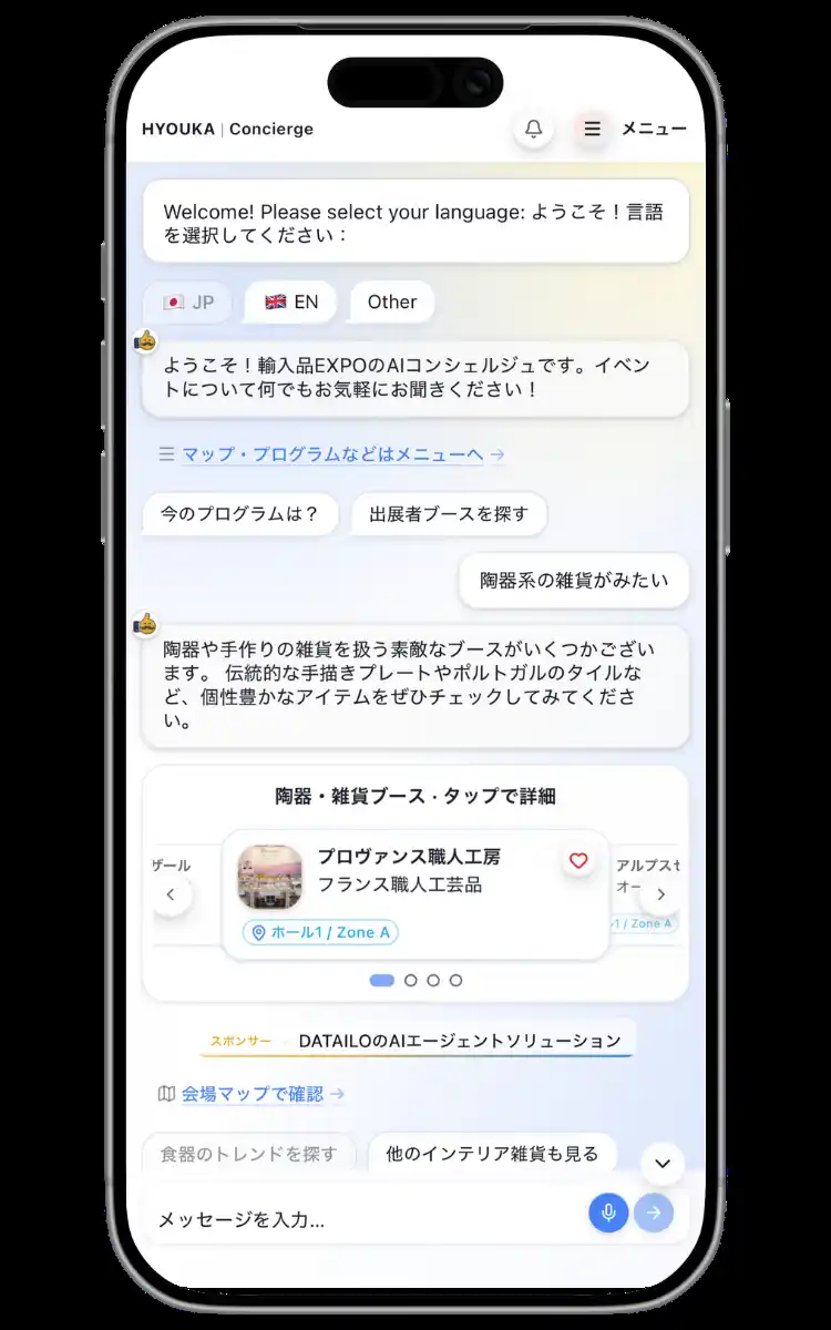 AIによるマッチングの最適化、来場者にアテンドし、最適な出展社へ繋ぐコンシェルジュ |