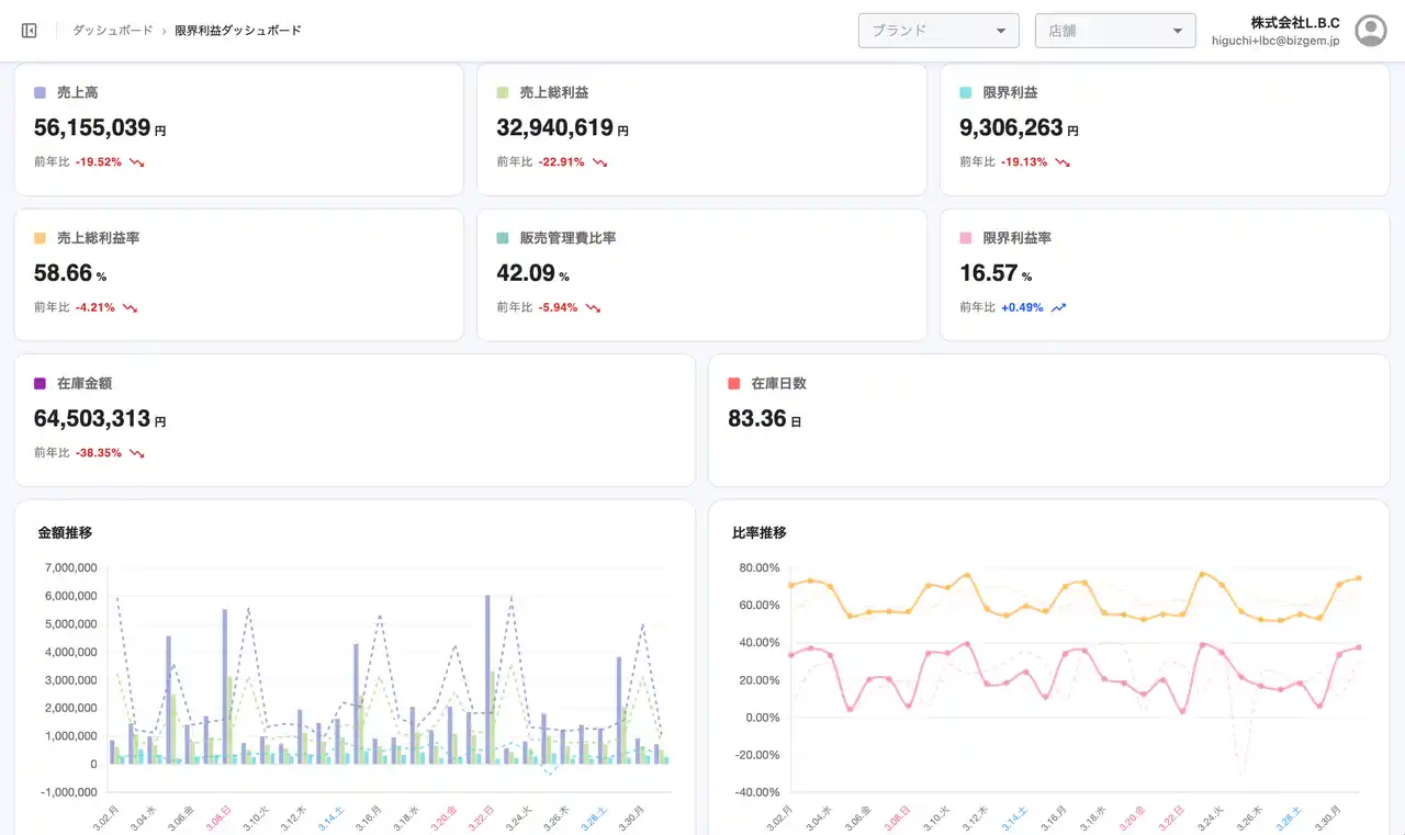ストアレコード限界利益のダッシュボード |