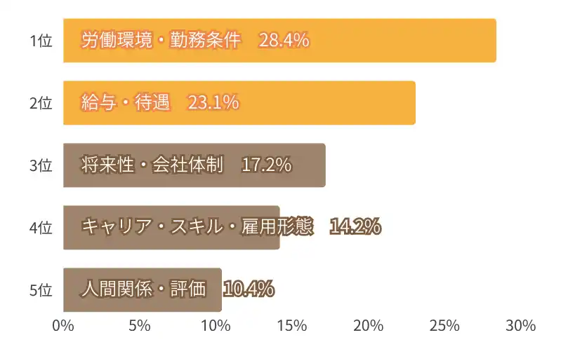 | ・「将来性・会社体制」「人間関係・評価」など、職場環境そのものへの危機感も上位に。 | |||