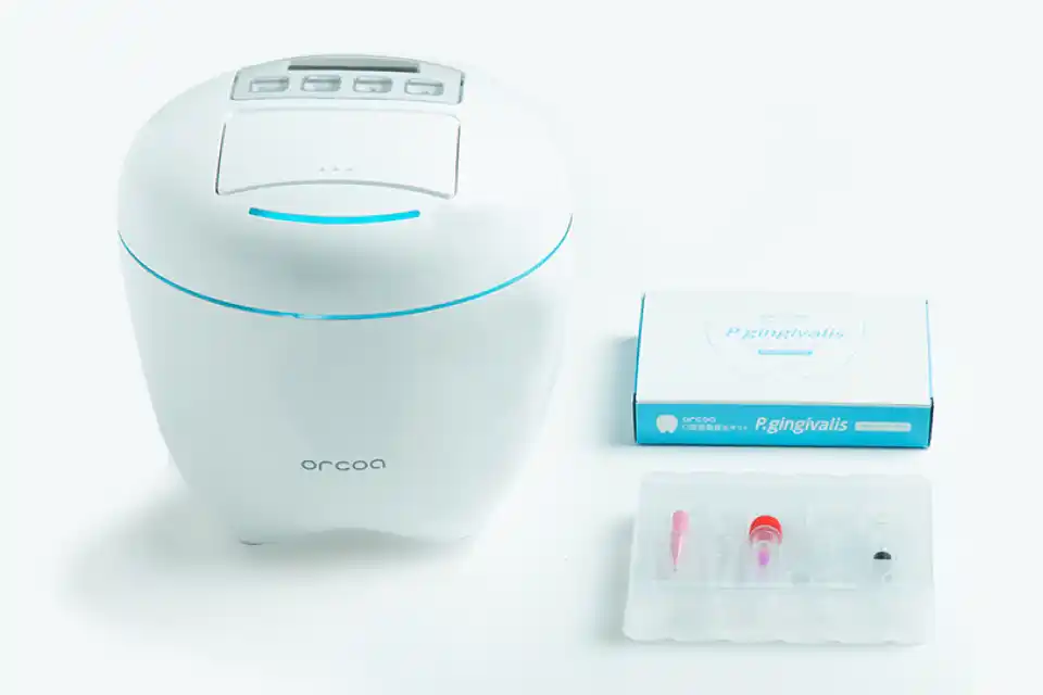 『orcoa』は、PCR法を活用した装置となっており、口腔内の歯周病菌を素早く精確に検出する革新的な装置となっております。新たな口腔検査システムの確立を提供し、人々の「健口」をサポートすることを目指しています。 |