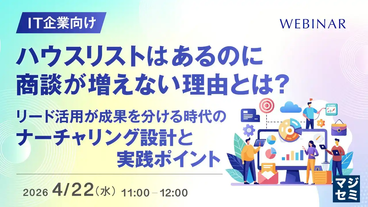 | マジセミ株式会社は「【IT企業向け】ハウスリストはあるのに商談が増えない理由とは?」というテーマのウェビナーを開催します。 |
