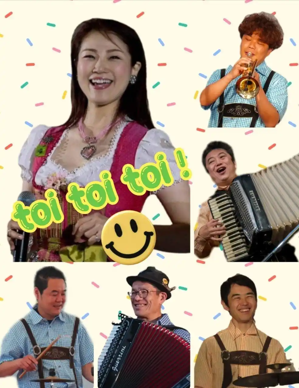 “toi,toi,toi!”(トイトイトイ!)とは、ドイツのおまじないの一つで、「上手くいくよ!」「大丈夫!」といった、相手の成功や幸せを祈る言葉。美味しいビールやお料理、そして私たちの音楽。飲んで食べて歌って踊って大いにお楽しみいただけます。 |