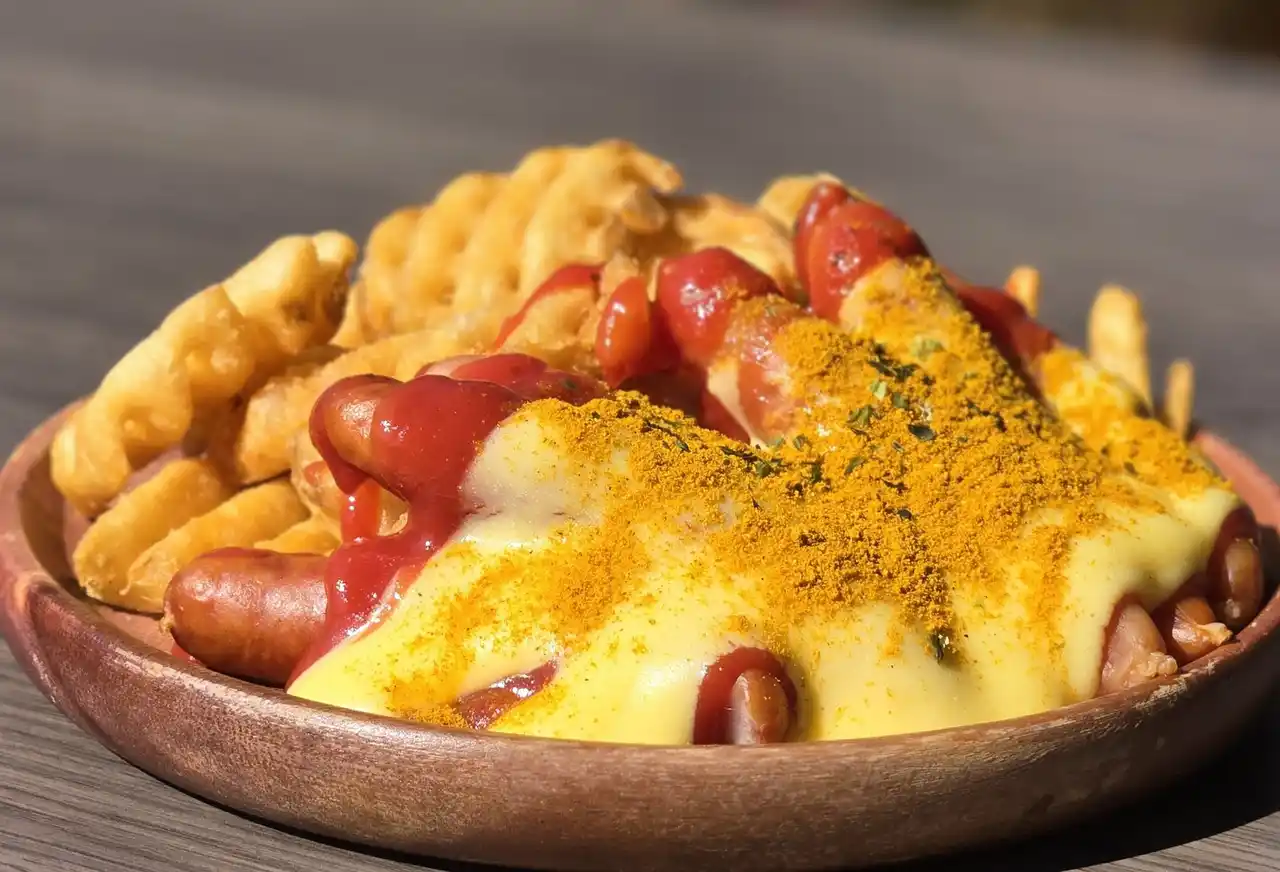 ドイツベルリン街角名物フード!パリッとジューシーなソーセージをグリルし、たっぷりのトマトソースと食欲をそそるカレー風味のパウダーをかけた定番ドイツフードにとろけるチーズをトッピングした人気No.1メニュー! |