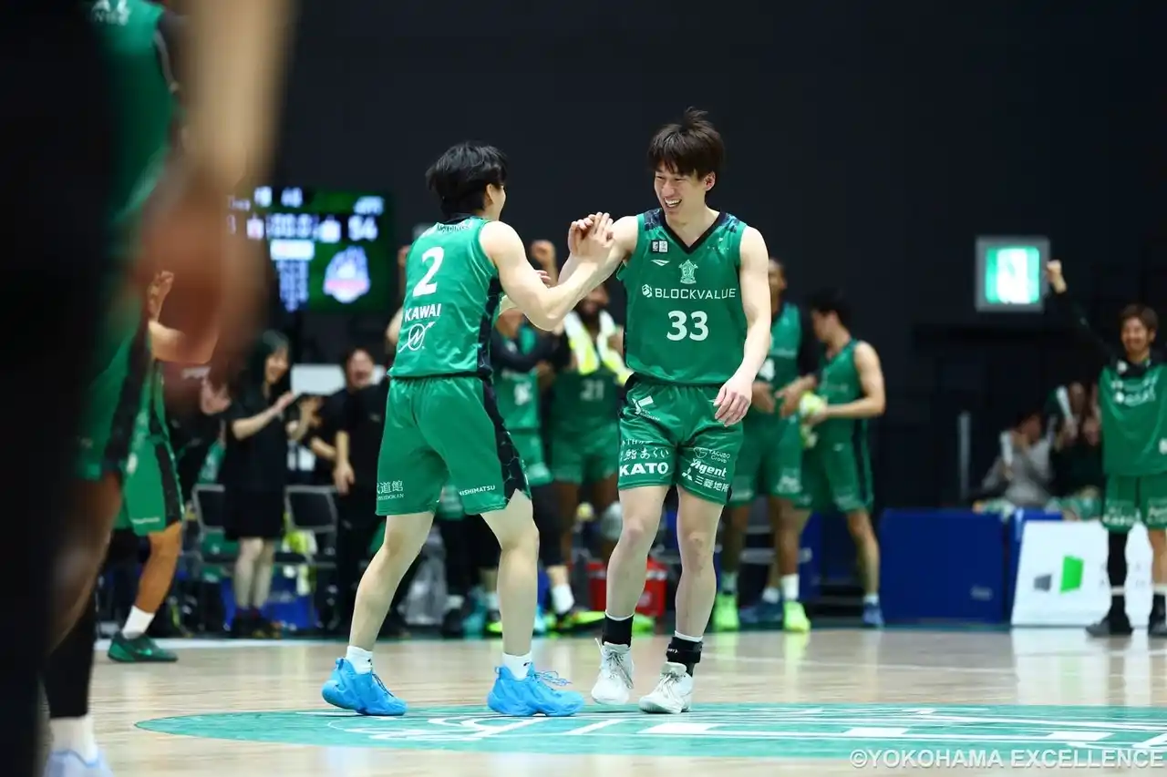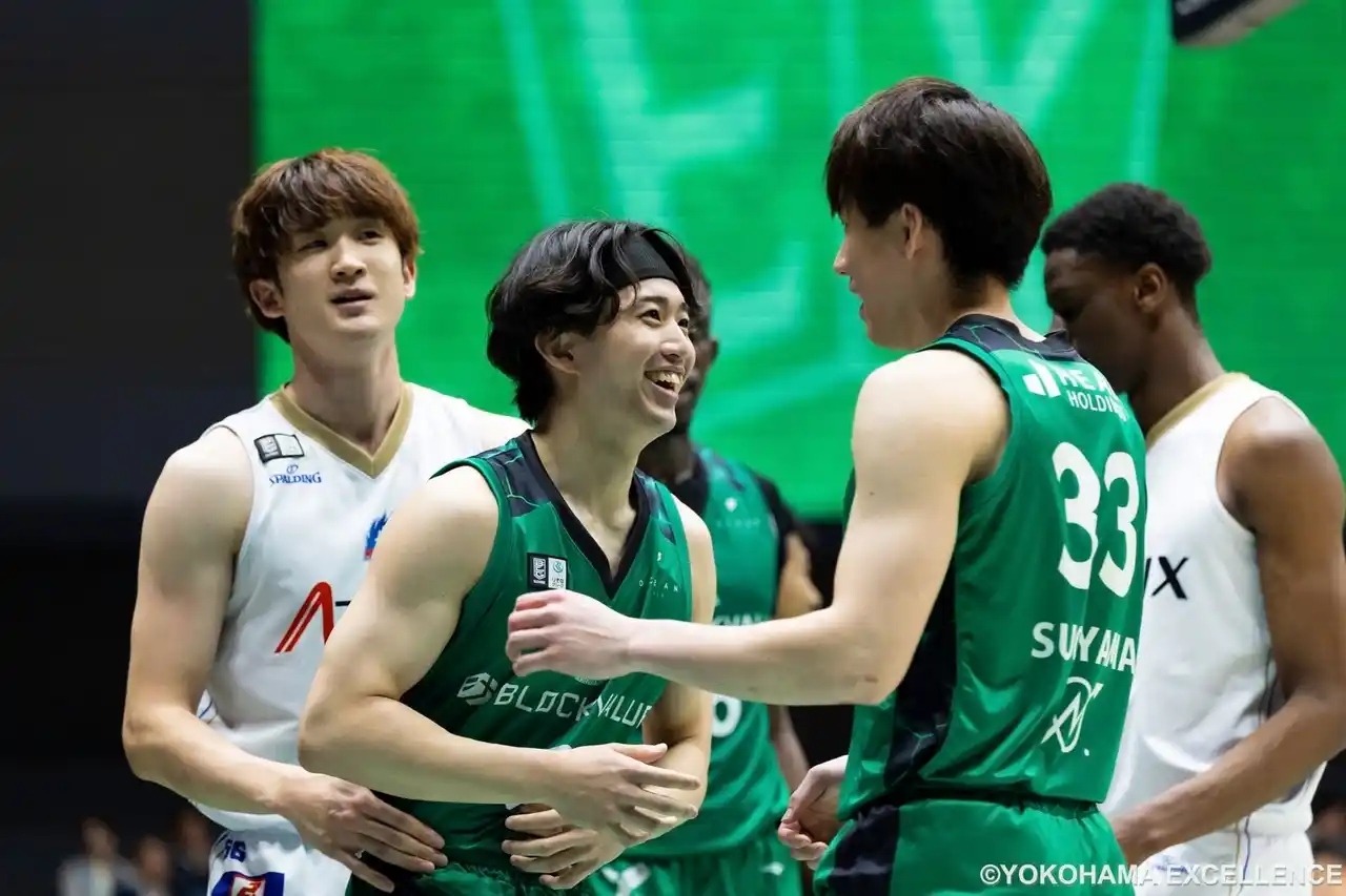 今シーズン最後の横浜BUNTAI開催となった今節は平日にも関わらず3,900名を超える両クラブのブースターがアリーナに集う中、今シーズン6試合目の青森ワッツ戦を迎えました。 立ち上がり、青森に先制を許したもののこの日スターティング5に名を連ねた「#5 ディクソンジュニア・タリキ」がチーム最初の得点を決めて追いつきます。 このまま勢いにのりたい1Qでしたが、その後はチームでの3Pシュート成功数が0本に抑え込まれてしまうなど、青森にペースを握られてしまい「13-16」とビハインドの状態で1Q終了。 2Qに入ると今度は横浜EXがペースを握ります。 3Pシュート成功率に苦しめられている中、「#1 トレイ・ボイドIII」が2Pシュートを5/5の100%で決めるなど15得点! 前節試合中に負傷交代をし、今節の出場も怪しまれたエースが健在ぶりを示します。 さらに「#21 エライジャ・ウィリアムス」や「#93 上良潤起」も続き、2Qではチーム全体で34得点を記録! 「#1 トレイ・ボイドIII」のブザービーターも生まれるなど、2Q終了時点で「47-33」と逆転に成功します! 3Qの立ち上がり、「#4 スティーブン・ハート」、「#21 エライジャ・ウィリアムス」も得点を重ねて勢いをもたらします。 そして「#18 クーリバリ セリンムルタラ」が3Qでチームトップタイの8得点を記録するなど3Qでもリズムは渡さず、「67-41」で3Q終了。 4Qに入っても「#18 クーリバリ セリンムルタラ」の活躍は続き、最終的にはキャリアハイを更新する18得点! そして「#88 木村啓太郎」氏の引退セレモニーも行われたこの試合、「88得点」での勝利につなげたのは「#2 河合瑠那」。 3月に特別指定選手として登録され、この日自身初のロスター入りを経験した「#2 河合瑠那」が試合終了間際に初得点を記録!今シーズンの横浜BUNTAI最終戦はそんなメモリアルな得点での勝利によって、幕を下ろすことになりました。 |